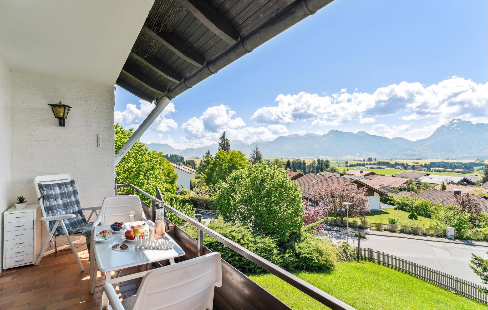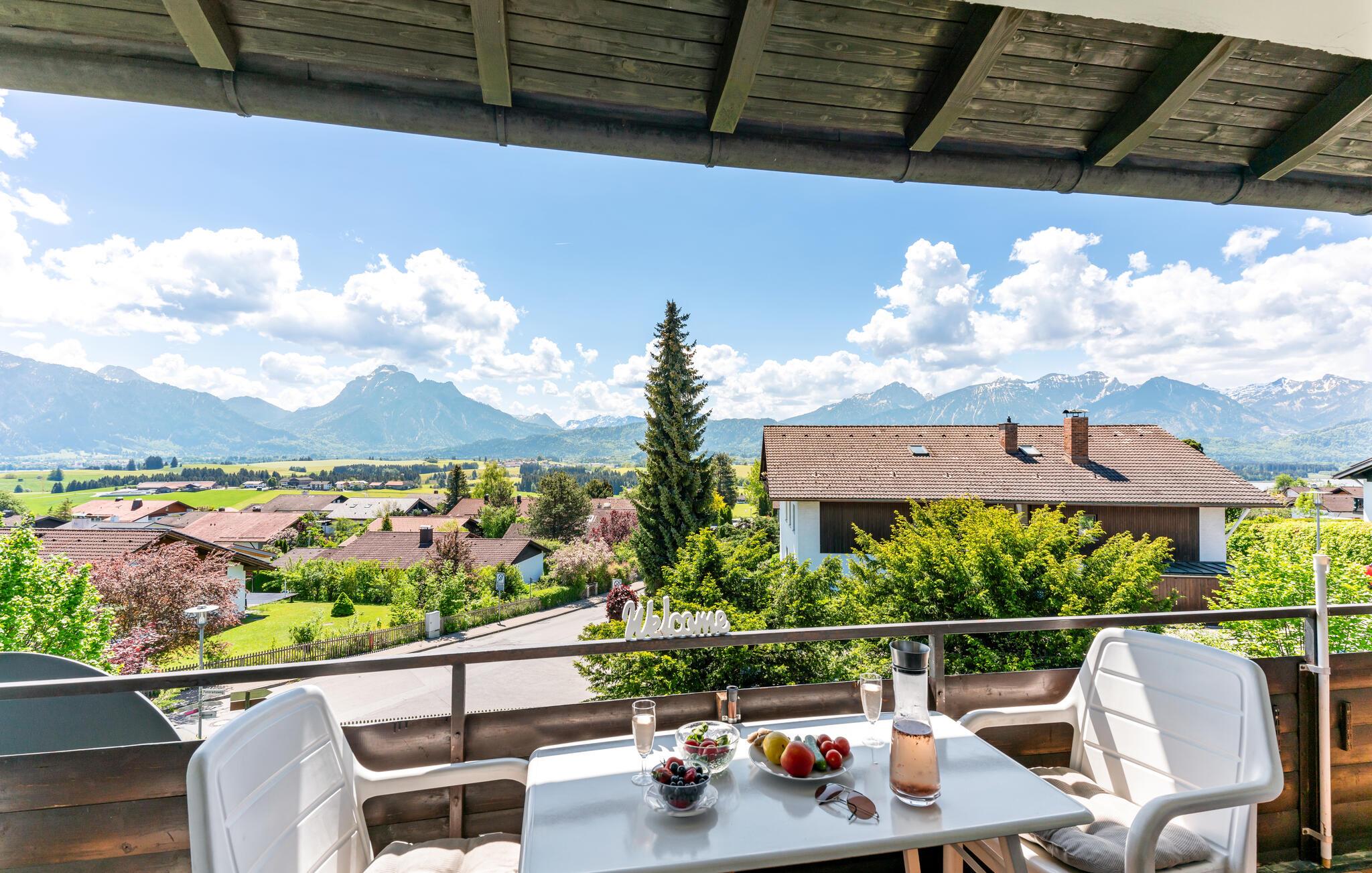 Fra den overdækkede altan har I både sommer og vinter den smukkeste udsigt over bjergene, den vidunderlige natur ved foden af Alperne og slottet Neuschwanstein, som er et af de mest imponerende slotte i Tyskland. I vil helt sikkert tilbringe mange timer her, hvor I kan spise morgenmaden eller aftensmaden i det fri til den storslåede udsigt og fantastiske solnedgange.