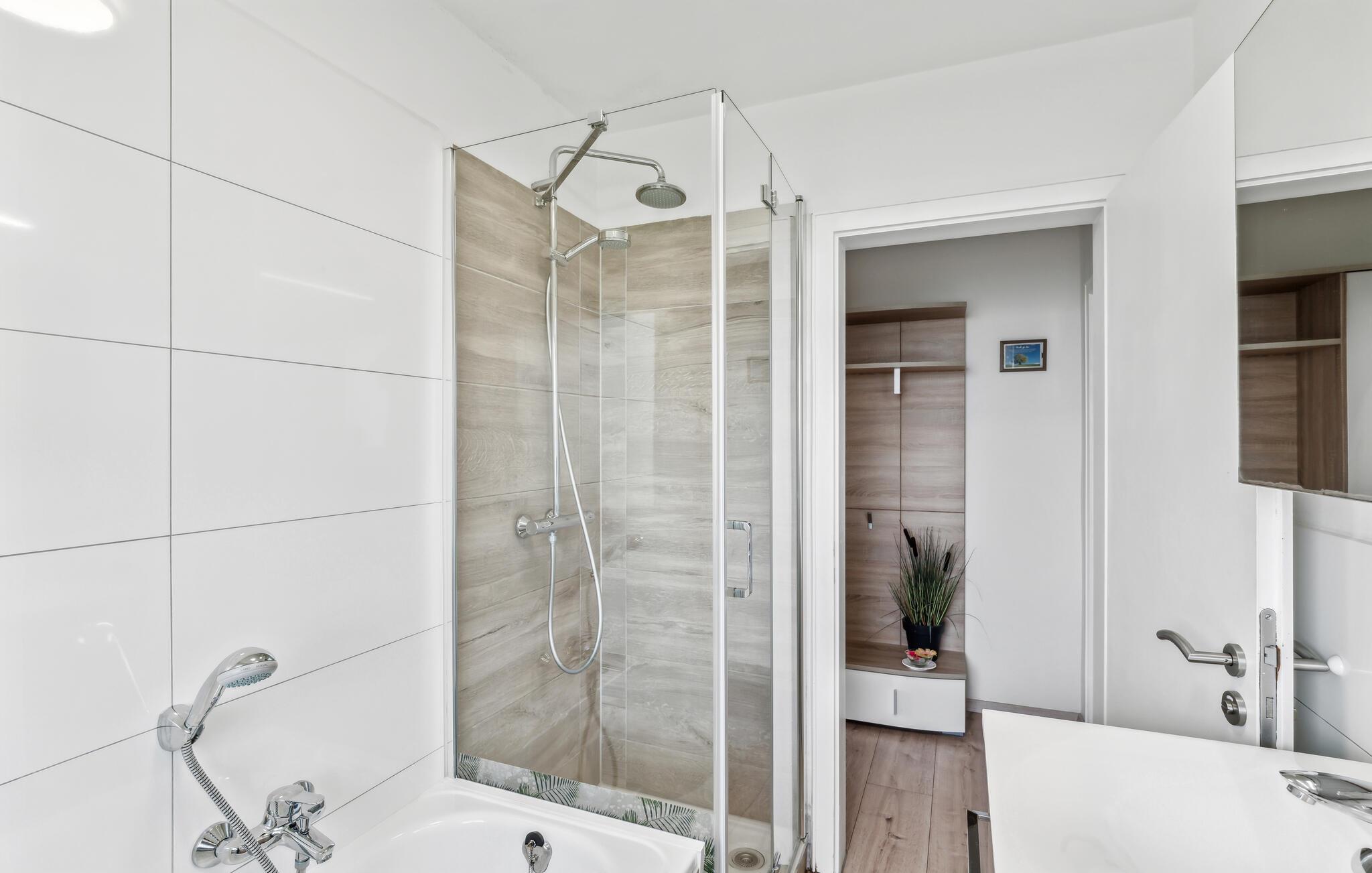 Badeværelse (nr. 1) - Varmt og koldt vand. Bruser og badekar