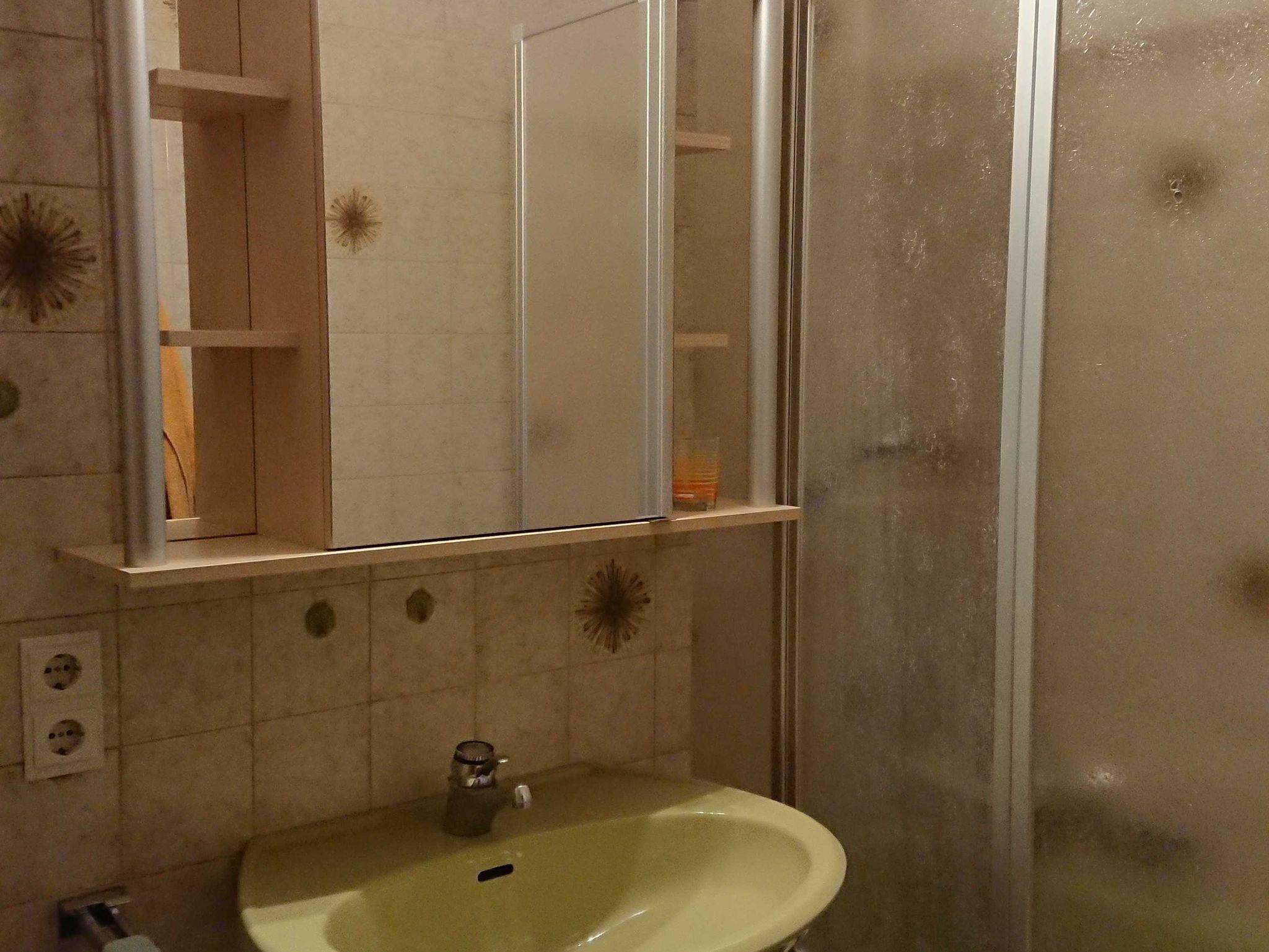 • Bad mit Badewanne, Duschwand und Fön