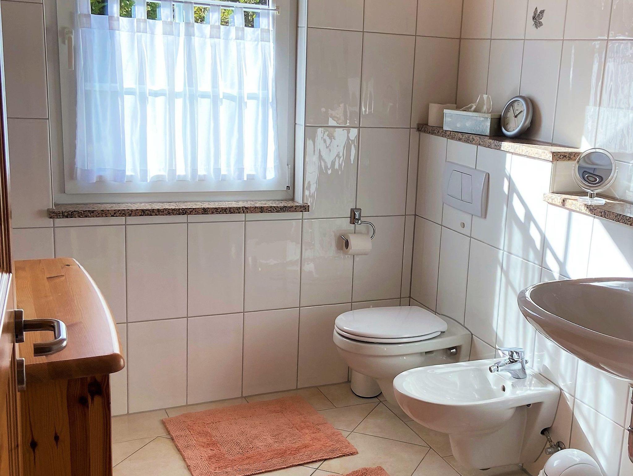 - Badezimmer: Waschbecken, Bidet, WC und Dusche
