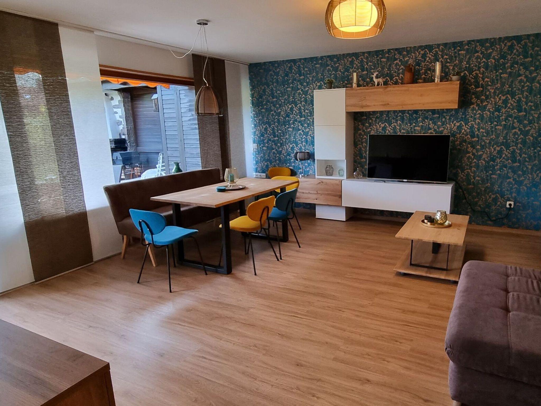 Neben 3 geräumigen Schlafzimmern mit Doppelbett stehen auf 120qm Wohnfläche ein Wohnzimmer mit Essbereich, eine moderne Küche, ein Bad mit Dusche und Badewanne, ein separates WC und im Keller eine Waschmaschine mit Trockner und auf Wunsch eine Sauna (gegen Berechnung) zur Verfügung.