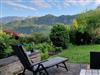 Von der Terrasse mit Tischgarnitur und Liegen kommt man in den Garten und hat einen herrlichen Blick auf die Berge, Sonnenuntergang inklusive!