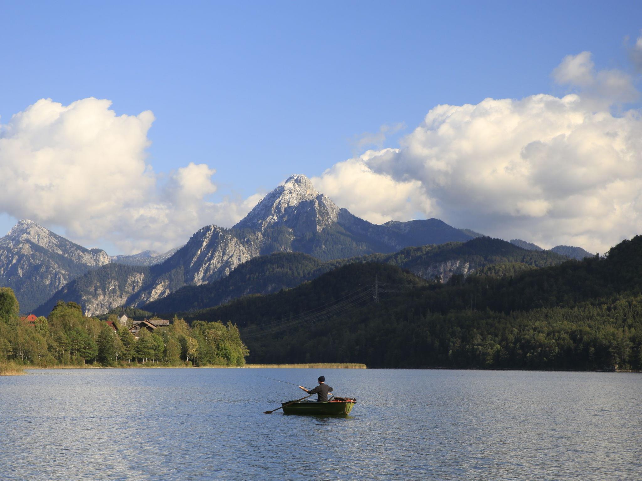 The area surrounding Füssen offers a wealth of possibilities for every taste. From picturesque Alpine peaks such as the Säuling and the Tegelberg to crystal-clear lakes such as the Forggensee and the Alpsee, there are countless opportunities for outdoor activities. Whether you are interested in hiking, cycling or water sports - the diverse nature and range of leisure activities leave nothing to be desired. Cultural highlights such as the Festspielhaus or the world-famous Neuschwanstein and Hohenschwangau castles are in the immediate vicinity and round off your holiday experience.