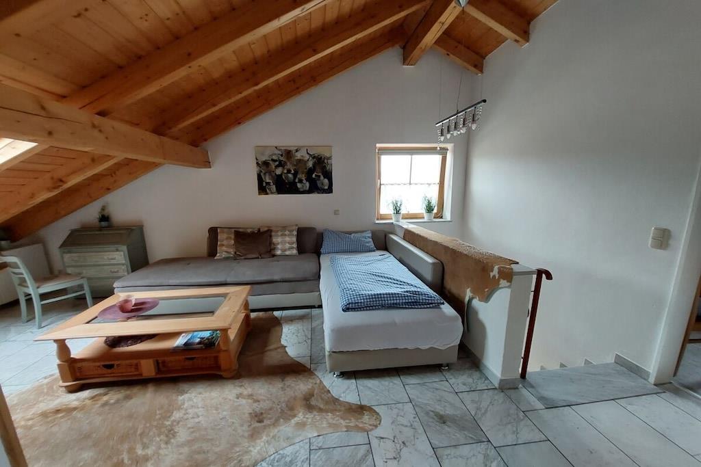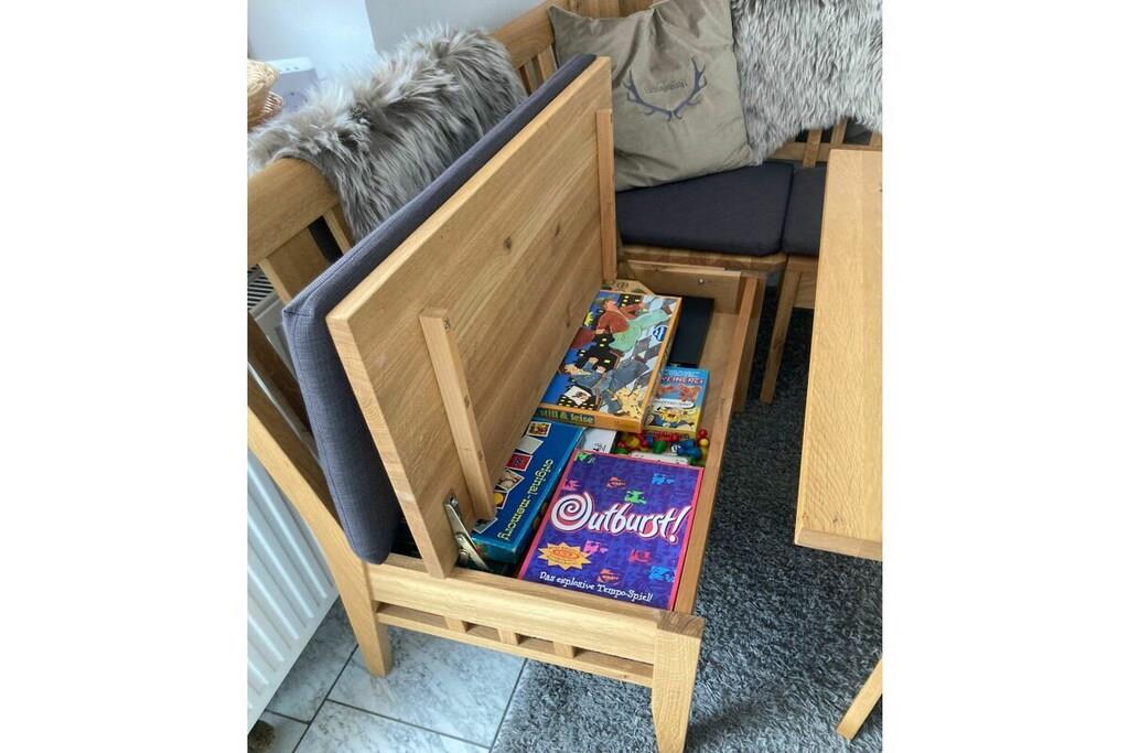 Hyggelig og hyggelig maisonette ferielejlighed, med alt hvad du behøver til en afslappende, dejlig ferie. Med smukke originale malerier af lokale kunstnere har de det særligt hyggeligt her! Nedenunder er der et køkken-alrum med et komfortabelt hjørnesæde og balkon, ovenpå er der en rummelig stue med en sovesofa, der fører ud fra det er soveværelse og badeværelse. Det fuldt udstyrede køkken byder på en hjørnebænk, opvaskemaskine, køleskab med fryser og mikroovn samt Senseo kaffemaskine, brødrister, æggekoger og kedel. En "normal" filterkaffemaskine er også tilgængelig. Basics som krydderier, opvaskemiddel og køkkenrulle er også tilgængelige for dig. Til sommergrill er der gasgrill med sidebrænder til grillning og madlavning på altanen samt bord med stole. Et smart-tv, en moderne Bluetooth-radio, DSL-internetforbindelse, en samling spil i hjørnebænken og en fuld bogreol giver underholdningsmuligheder.