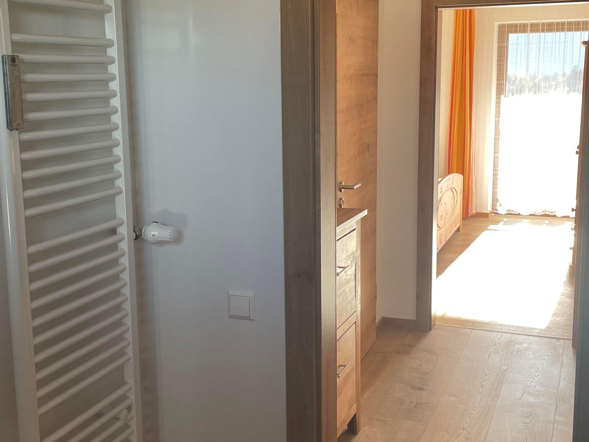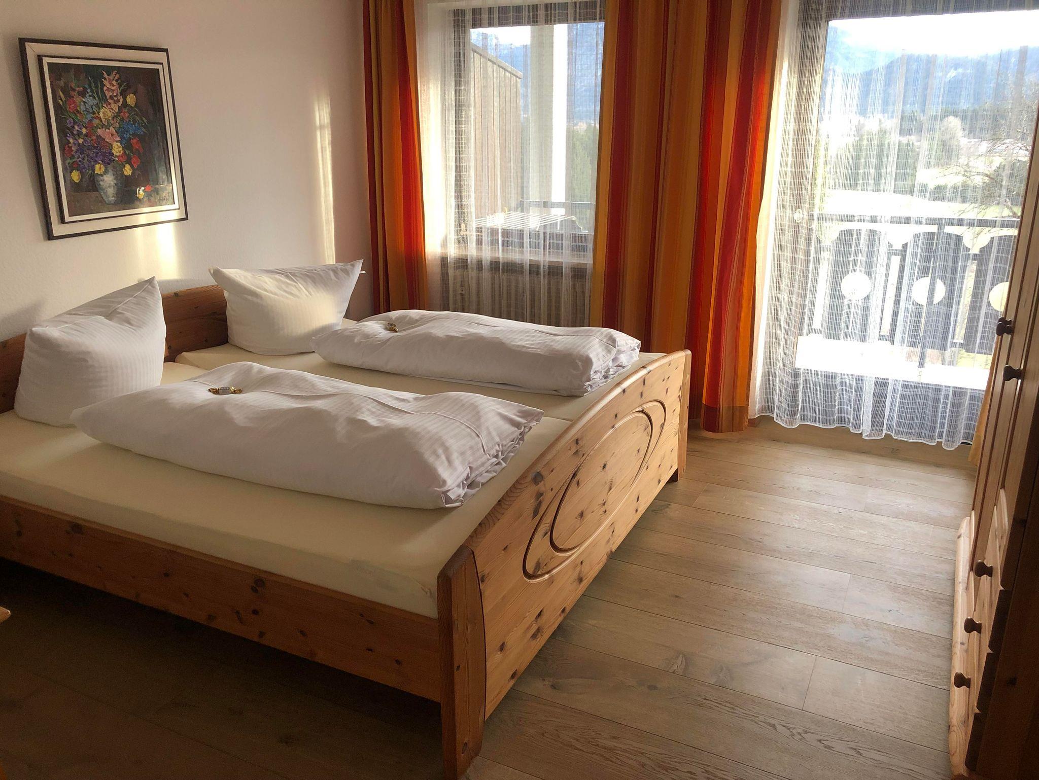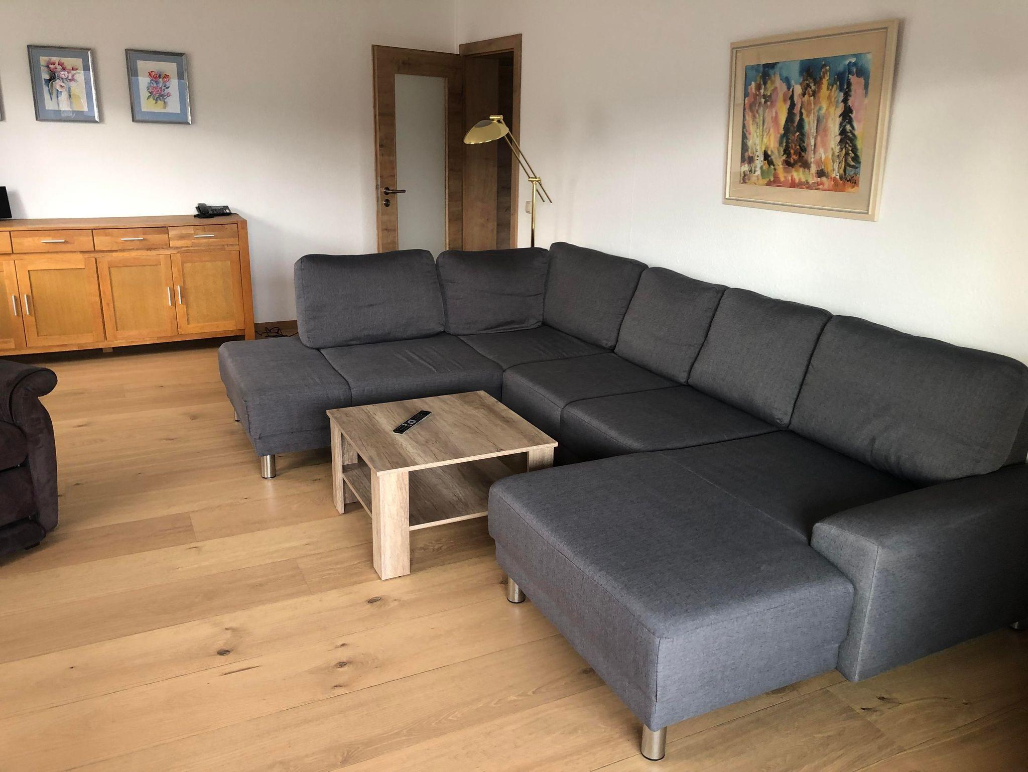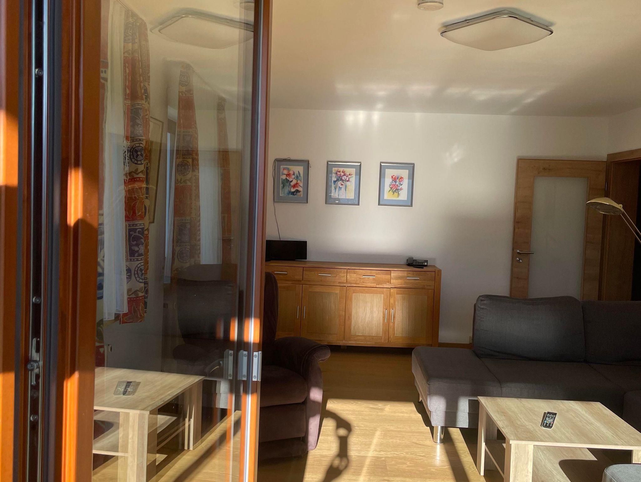 Gut möblierte Wohnung mit Küche, Wohnzimmer mit Polstergarnitur und Fersehsessel, TV, Radio, 1 Doppelschlafzimmer, Dusche mit WC, großer Südbalkon, Toaster, Heißwasserkocher, Mikrowelle, Radiowecker.