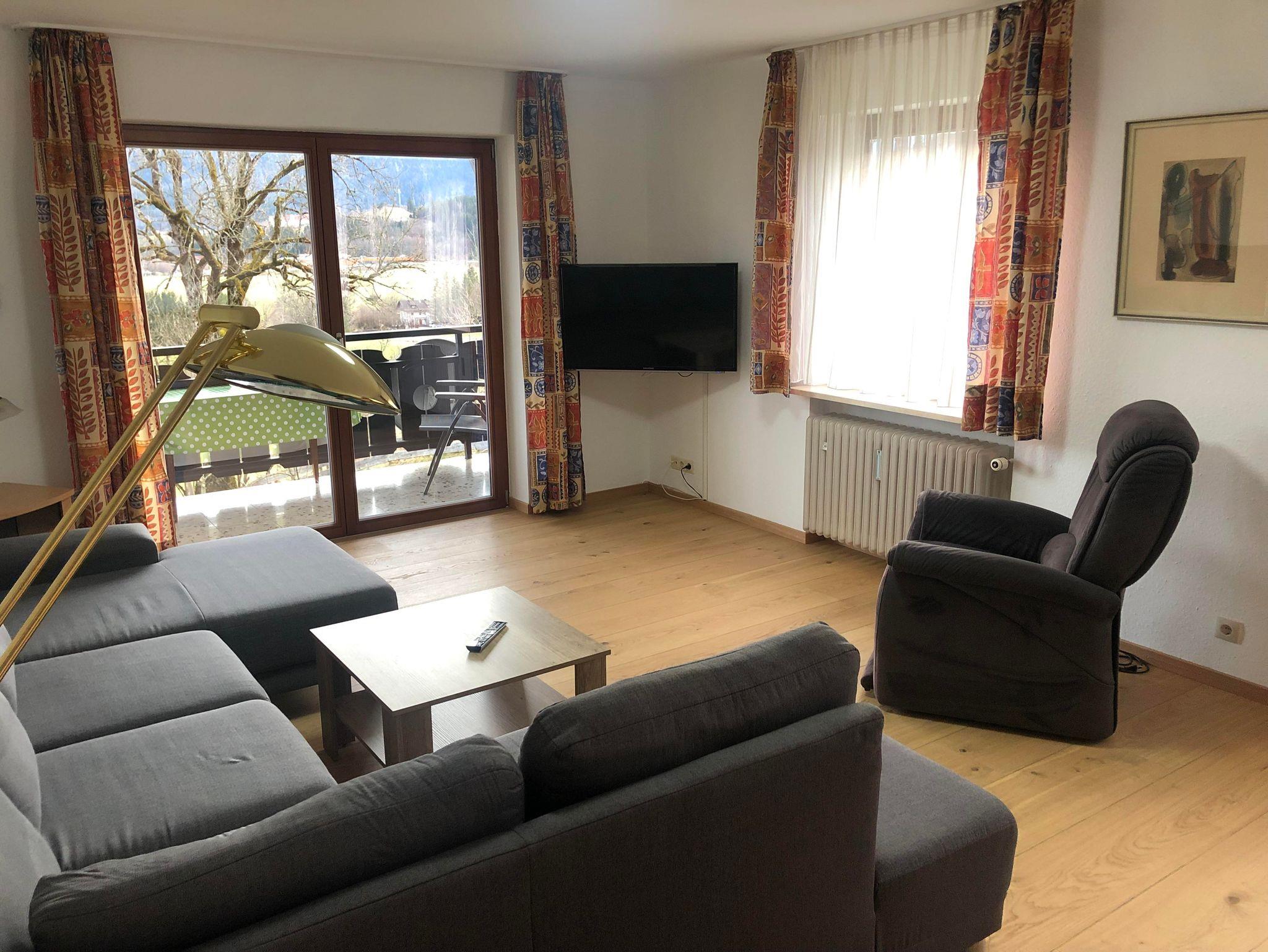 Sie wohnen bei uns in der 1. Reihe, ein Geheimtipp, freier Blick auf Berge, Schloss Neuschwanstein und Hohenschwangau. Unser Haus liegt in ruhiger Südhanglage. Die gut ausgestatteten Ferienwohnungen bieten gemütliche Atmosphäre. Abseits von Verkehr zwischen Füssen und Hopfen am See, jeweils zwei km entfernt.
