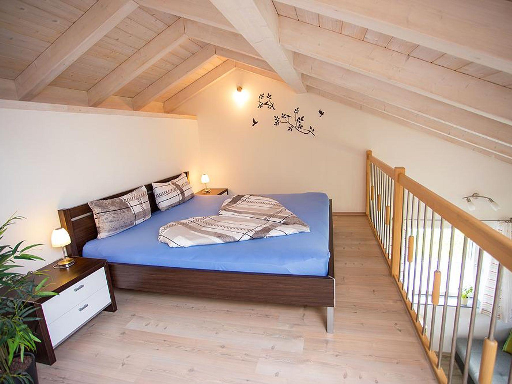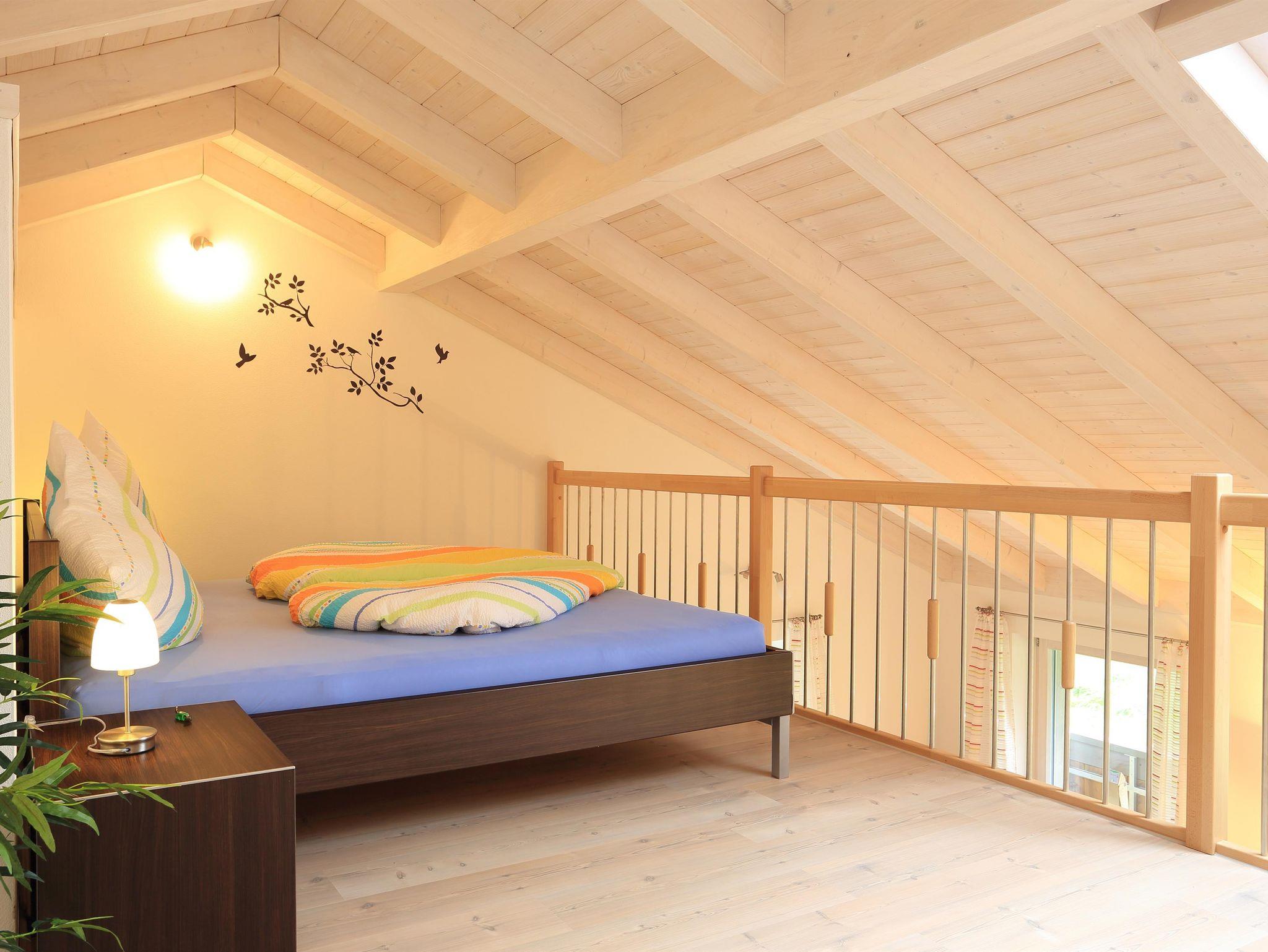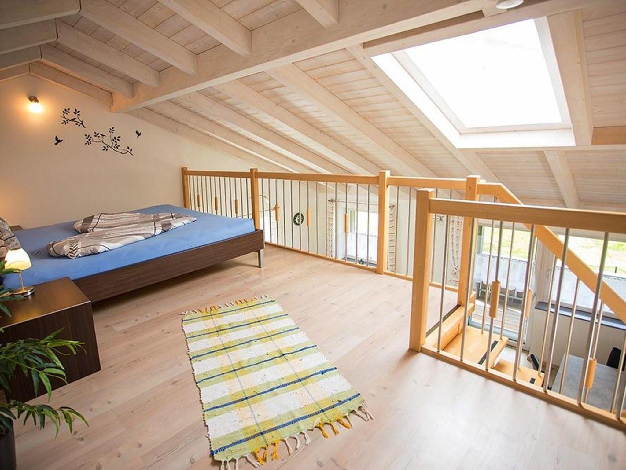 Das Hauptschlafzimmer liegt nordöstlich und das Galerieschlafzimmer ist über eine Treppe durch das Wohnzimmer erreichbar.