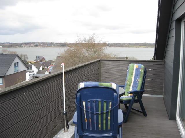 Die Nichtraucher-Wohnung, gelegen in einer ruhigen Wohnsiedlung, befindet sich im ersten Stock einer Doppelhaushälfte. Der Parkplatz ist direkt rechts neben der Garagenauffahrt. Das Haus liegt am Ende des Ortes auf einer Anhöhe etwa 250 m vom Südufer der Schlei entfernt. Zum Sonnen und Relaxen steht der große Balkon mit herrlichem Blick über die Schlei zur Verfügung.