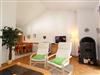 Schlafgalerie für 2 Personen. Wohnraum mit hübscher Sitzgarnitur, separater Essplatz, Kaminofen, voll
