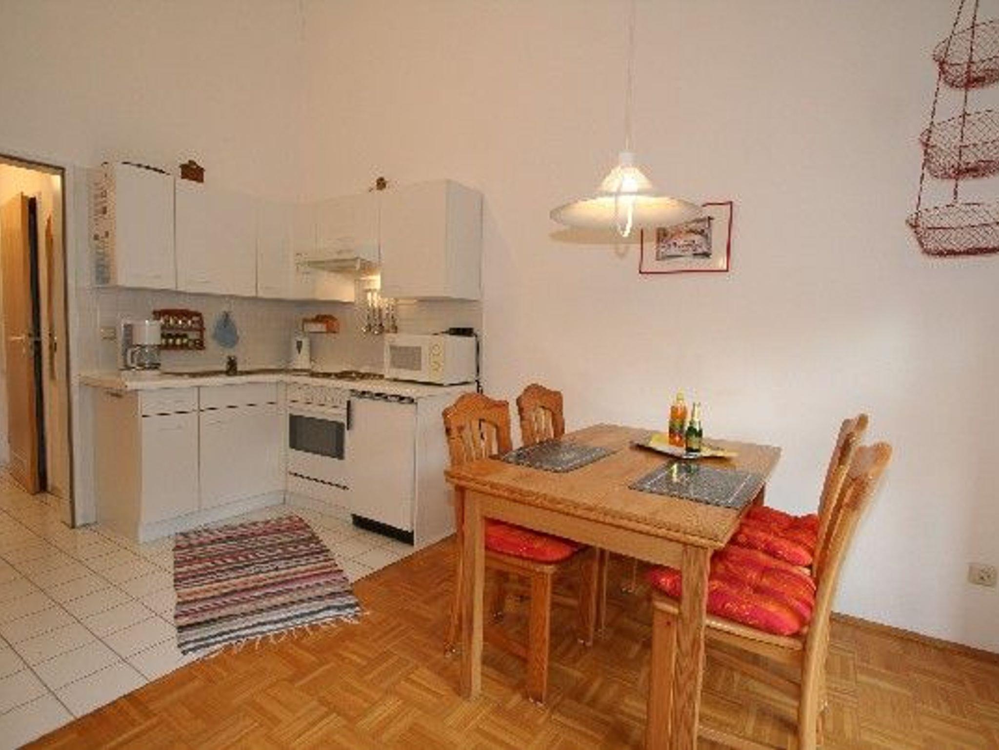 Sie wohnen in einem 2-Zimmer-Appartement für bis zu 4 Personen, ca. 48 m², ein Schlafzimmer mit Doppelbett, Wohn-/Schlafraum mit bequemer Doppelbettcouch, separater Essplatz, voll ausgestatteter Küchenbereich mit Mikrowelle, Diele mit Garderobe, Dusche/WC, Balkon, SAT-Flachbild-TV und Telefon.