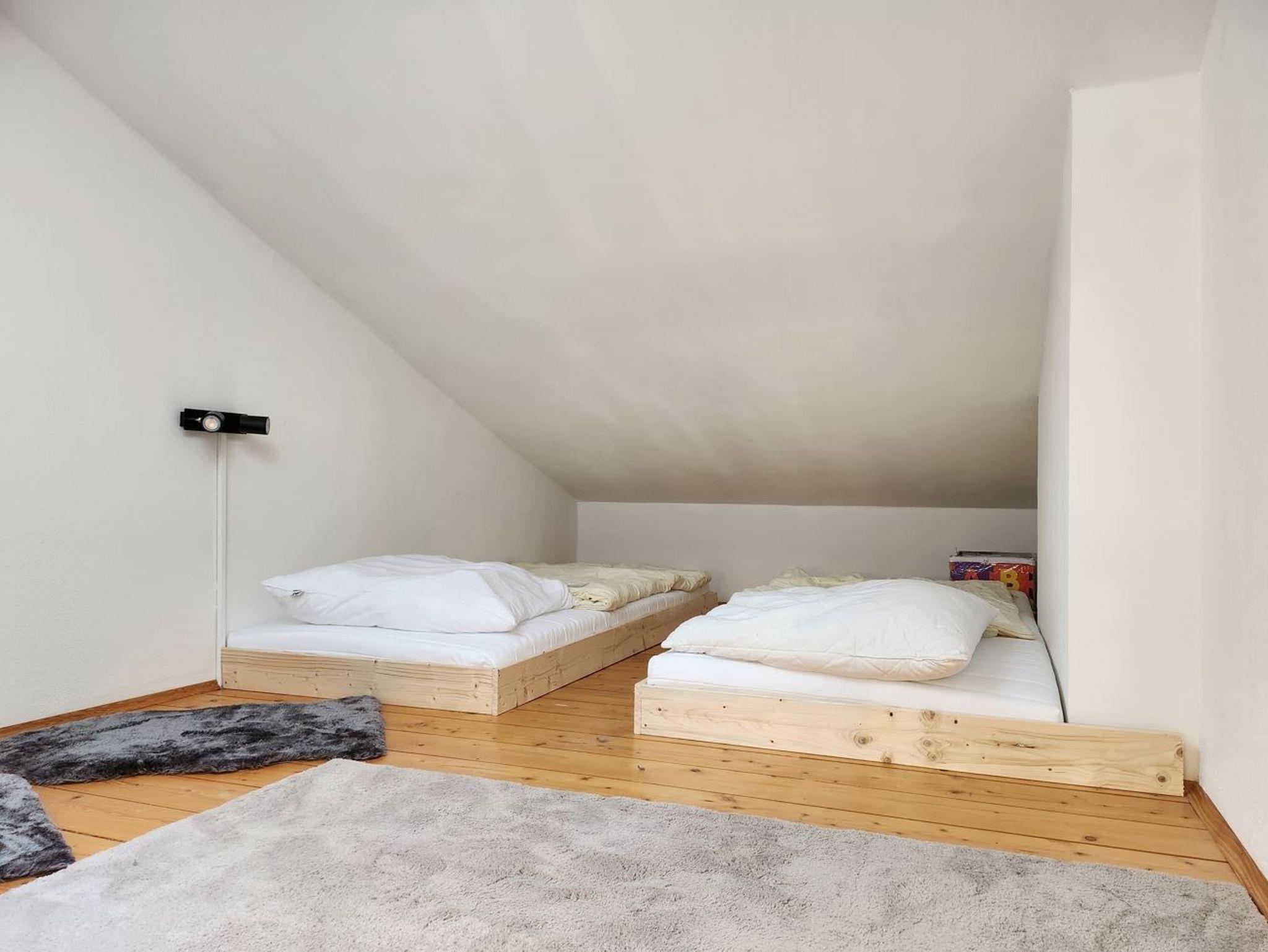 Sie wohnen in einer ca. 60 m² (inkl. Galerie) großen Wohnung im Obergeschoss, die im Jahr 2023 komplett neu renoviert wurde. Die Einbauküche ist in 2023 erneuert worden. Das Schlafzimmer ist mit einem geräumigen Kleiderschrank sowie mit einem Boxspring-Bett ausgestattet. Zusätzlich ist im Schlafzimmer einZeltbett auf dem Schrank. In dem modernen Wohnzimmer befindet sich eine bequeme Schlafcouch sowie ein 50 Smart -TV. Das Bad besitzt eine Wellness-Regendusche und hochwertige Badmöbel. Für wohlige Wärme sorgen Wärmewellen-Heizungen und ein Kaminofen . Die Schlaf- und Spielgallerie ist über eine Treppe zu erreichen und ist mit zweivollwertigen Betten ausgestattet, sodass die Wohnung bis zu 4 Personen beherbergen kann.