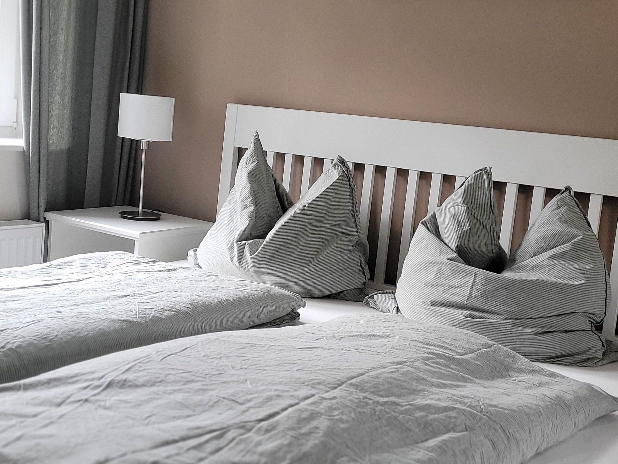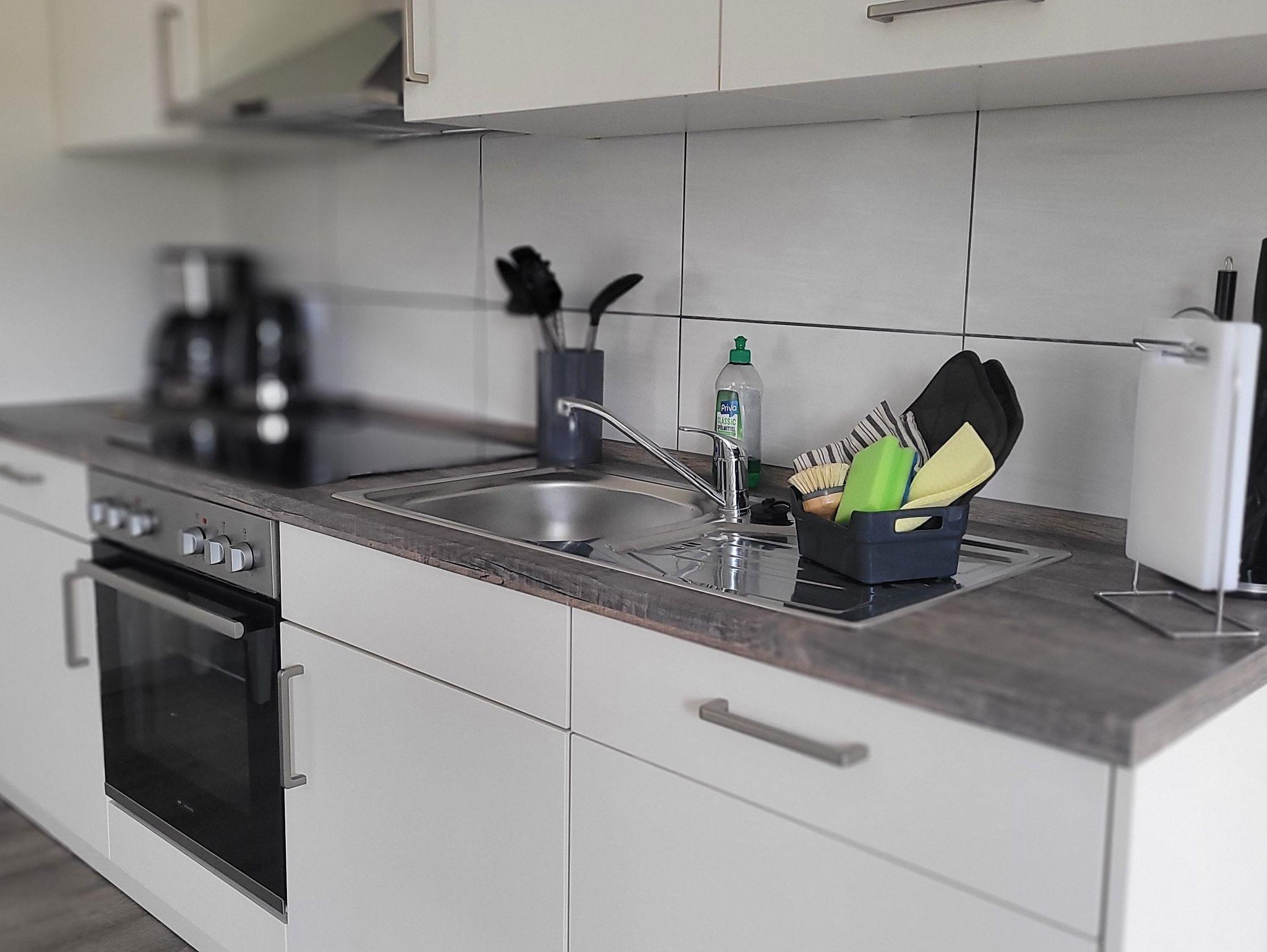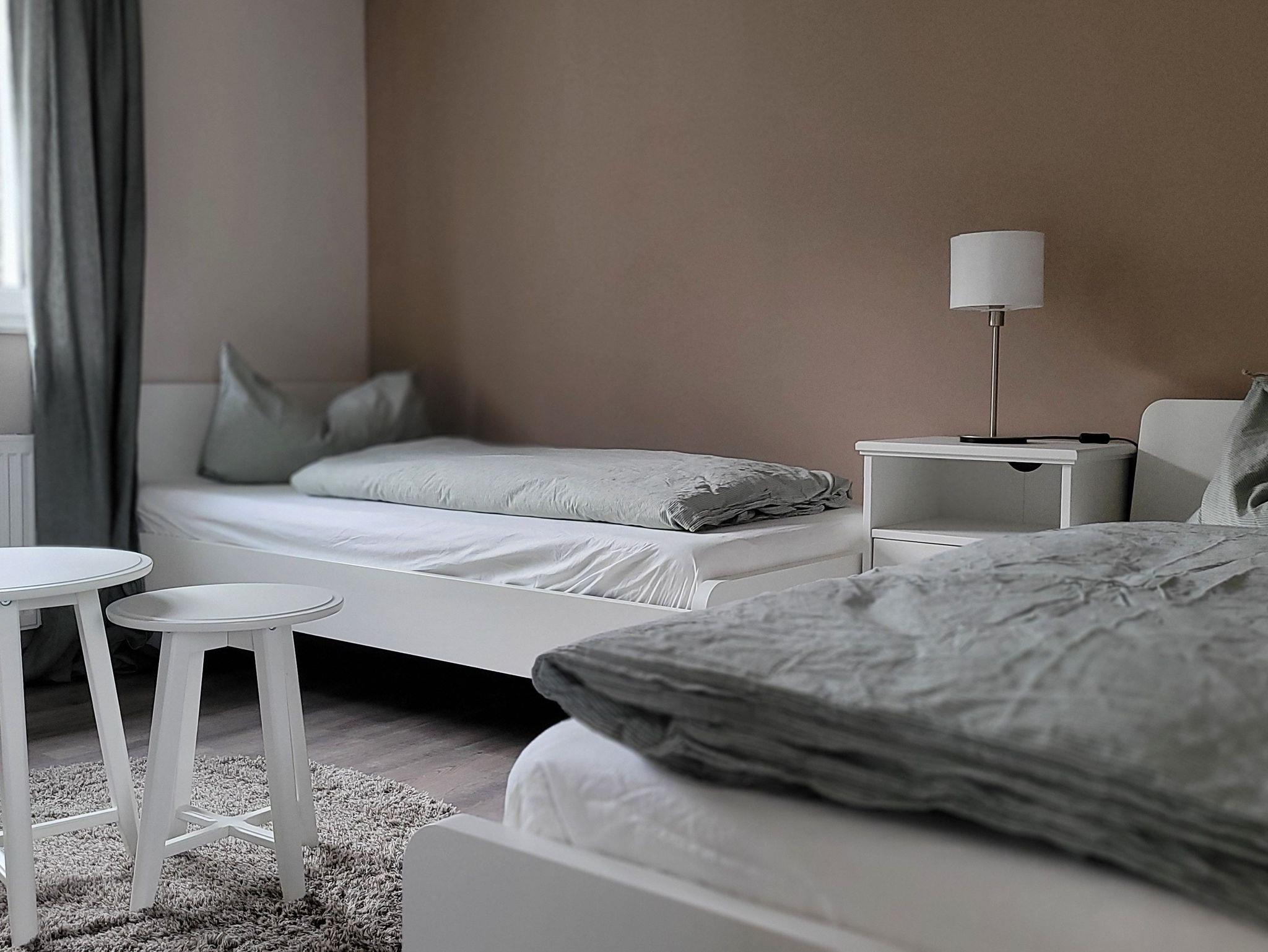 Die frisch renovierte Ferienwohnung Isi verfügt über eine modern eingerichtete Küche, ein Schlafzimmer, ein Wohnzimmer mit Flachbildfernseher und ein Bad. In dem ruhig gelegenen Schlafzimmer verbringen bis zu zwei Personen eine ausgeruhte Nacht in einem großen Doppelbett. Zwei weitere Personen finden einen gemütlichen Platz in den Einzelbetten. Für eine fünfte Person bieten wir als Aufbettung eine Schlafcouch in dem offenen Wohnbereich. In der Küche befindet sich alles, was Sie für ein leckeres Frühstück, Mittagessen oder Barbecue am Abend benötigen. Zur Ausstattung gehören eine Geschirrspülmaschine, ein Toaster, eine Kaffeemaschine, ein Backofen, ein 4-Platten-Herd und eine großzügige Ausstattung mit Ess- und Kochgeschirr. Der offene Wohn- und Essbereich lädt zum Verweilen ein. Außerdem gibt es einen direkten Zugang zu einer eigenen Holzterrasse mit kleinem Garten. Hier lassen Sie den Alltag hinter sich und die Seele baumeln. Gönnen Sie sich eine Tasse Tee oder Kaffee auf unseren modernen Gartenmöbeln im Outdoorbereich. Ihr Fahrzeug können Sie direkt an der Ferienwohnung parken - es steht sicher auf unserem Gelände. Wir freuen uns nun, Sie auf dem Falkenhof in Meisdorf begrüßen zu dürfen und wünschen Ihnen eine gute Zeit.