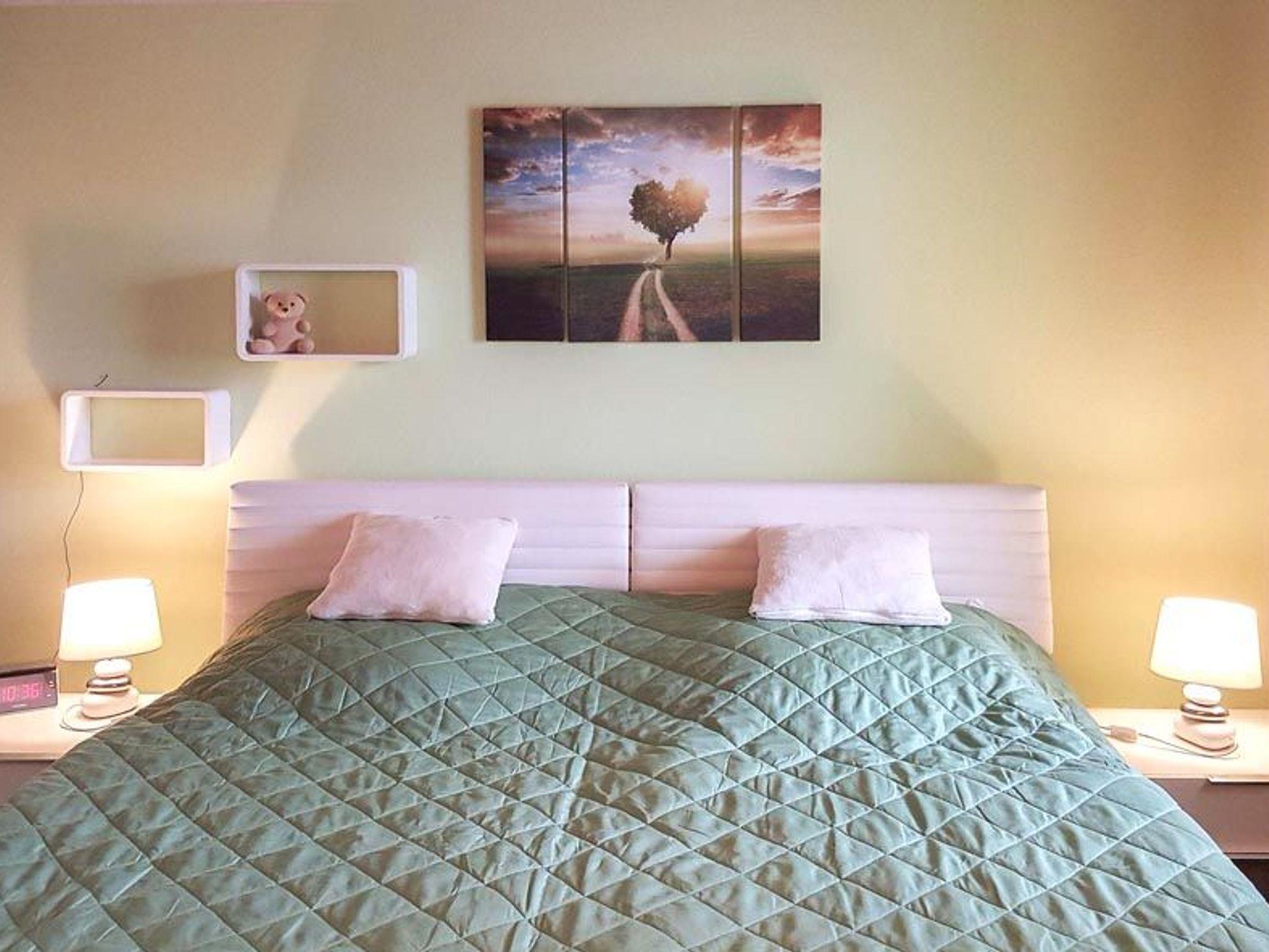 Sie wohnen in einem 2-Zimmer-Haus für bis zu 4 Personen, mit einem Schlafzimmer mit Doppelbett, geräumigem Schrank und zusätzlicher Schlafgalerie für zwei Personen, ein zweites LED-Fernsehgerät mit DVD und ein Safe sind vorhanden.