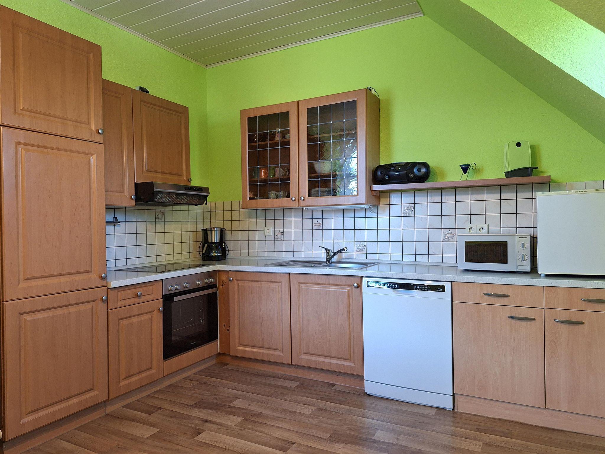 Die Ferienwohnung, 90 m², für zwei bis sechs Personen, verfügt über zwei bzw. drei separate Schlafzimmer, Wohnzimmer mit SAT-TV, eine komplett eingerichtete Küche mit Geschirrspüler, Bad mit Dusche/WC und Waschmaschine sowie einem Gäste-WC. Bettwäsche und Handtücher sind inklusive.