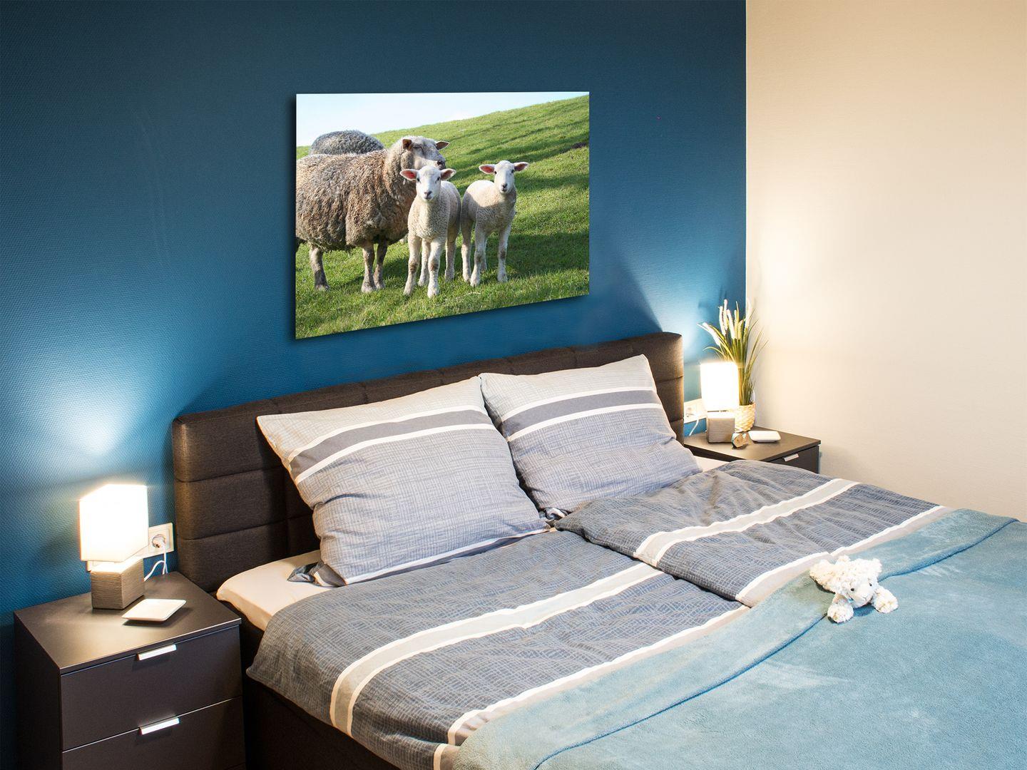 Drei liebevoll eingerichtete Schlafzimmer mit bequemen Boxspring-Doppelbetten (mit durchgängigem Topper) sorgen für einen erholsamen Schlaf. Jedes Zimmer verfügt über einen eigenen TV, ausreichend Stauraum, Sitzgelegenheit sowie Verdunkelungsvorhänge und -plissees. Auch an kleine Gäste ist gedacht: Ein Babybett mit Hygieneauflage sowie ein Hochstuhl, Kindergeschirr, Fläschchenwärmer und Vaporisator sind vorhanden.