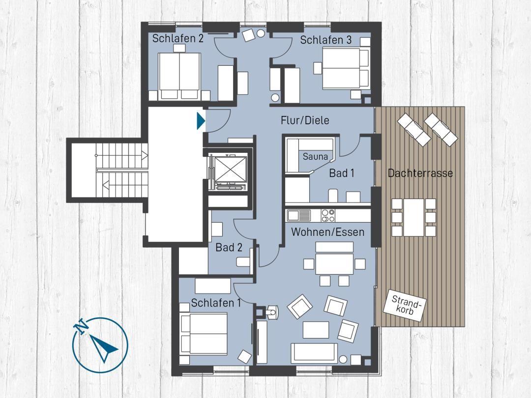 Auszeit im Sielhuus – Penthouse mit Weitblick. Sauna. Dachterrasse. Exklusiv.