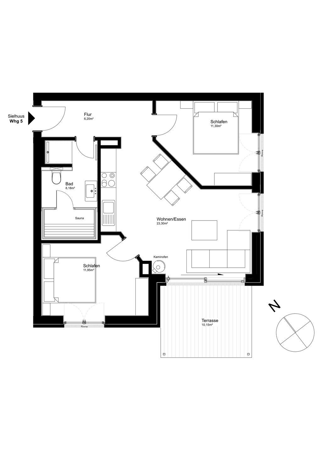 Im Erdgeschoss gelegen und stilvoll ausgestattet: Die Ferienwohnung „Sielhuus 5“ bietet auf 65?m² Platz für bis zu 4 Gäste und überzeugt mit privater Sauna, Gaskamin, Südwest-Terrasse und familienfreundlichen Extras. Ideal für entspannte Tage an der Nordsee – auch in der Nebensaison.