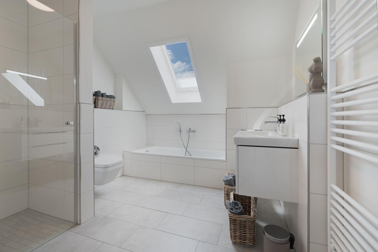 Ein echtes Highlight ist das großzügige Wellnessbad im Obergeschoss – mit privater Sauna, Dusche und Badewanne. Für den schnellen Frischekick steht dir im Erdgeschoss ein weiteres Bad mit Dusche und WC zur Verfügung.