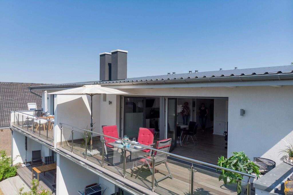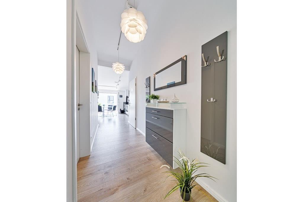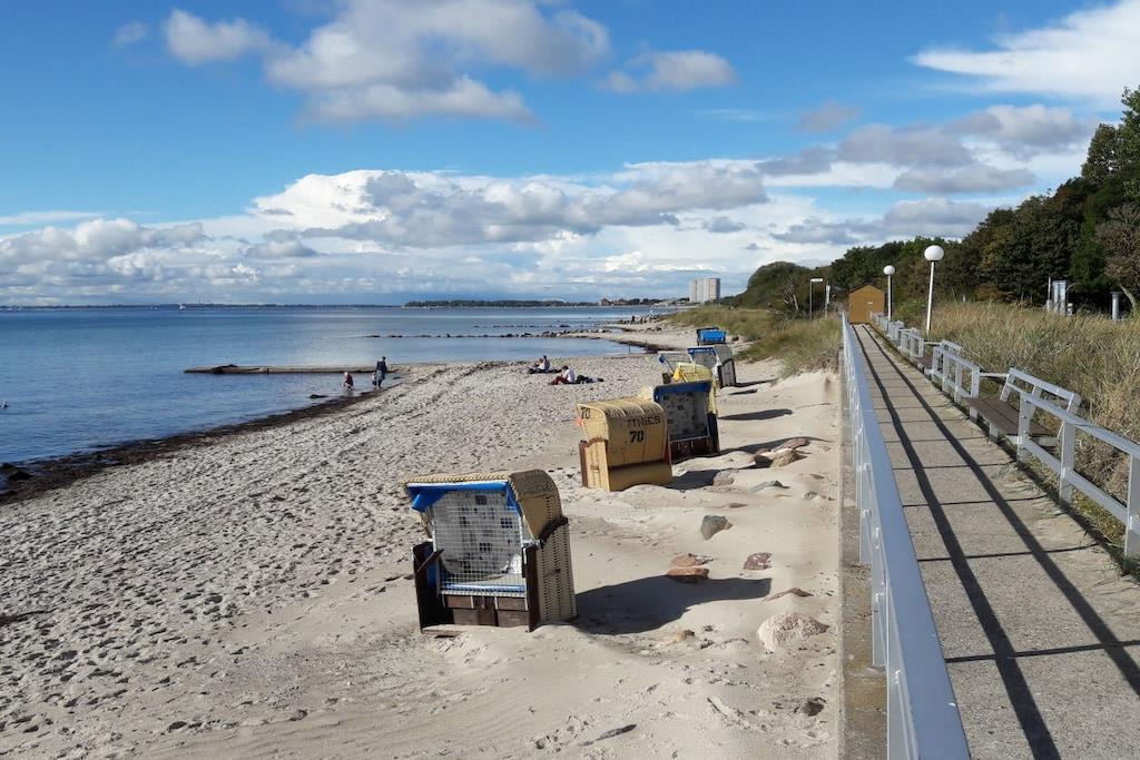 Ferielejligheden ligger i landsbyen Meeschendorf, i den sydøstlige del af øen Femern, ikke langt fra South Beach. Lejligheden ligger på første sal og er fuldt møbleret til op til 5 personer. Den har to soveværelser, et badeværelse med bruser, en stor stue med tekøkken, spiseplads og siddeområde. Der er en brændeovn til rådighed til hyggelige aftener. Meeschendorf, og selve lejligheden, ligger på en lille bakke. Derfra har du en god udsigt over markerne og en smuk udsigt over Østersøen i det fjerne. Østersøen ligger cirka 1 km væk og kan nemt nås med bil, cykel eller til fods. Meeschendorf strand er en del af South Beach-området, hvilket betyder, at den har fint sand.