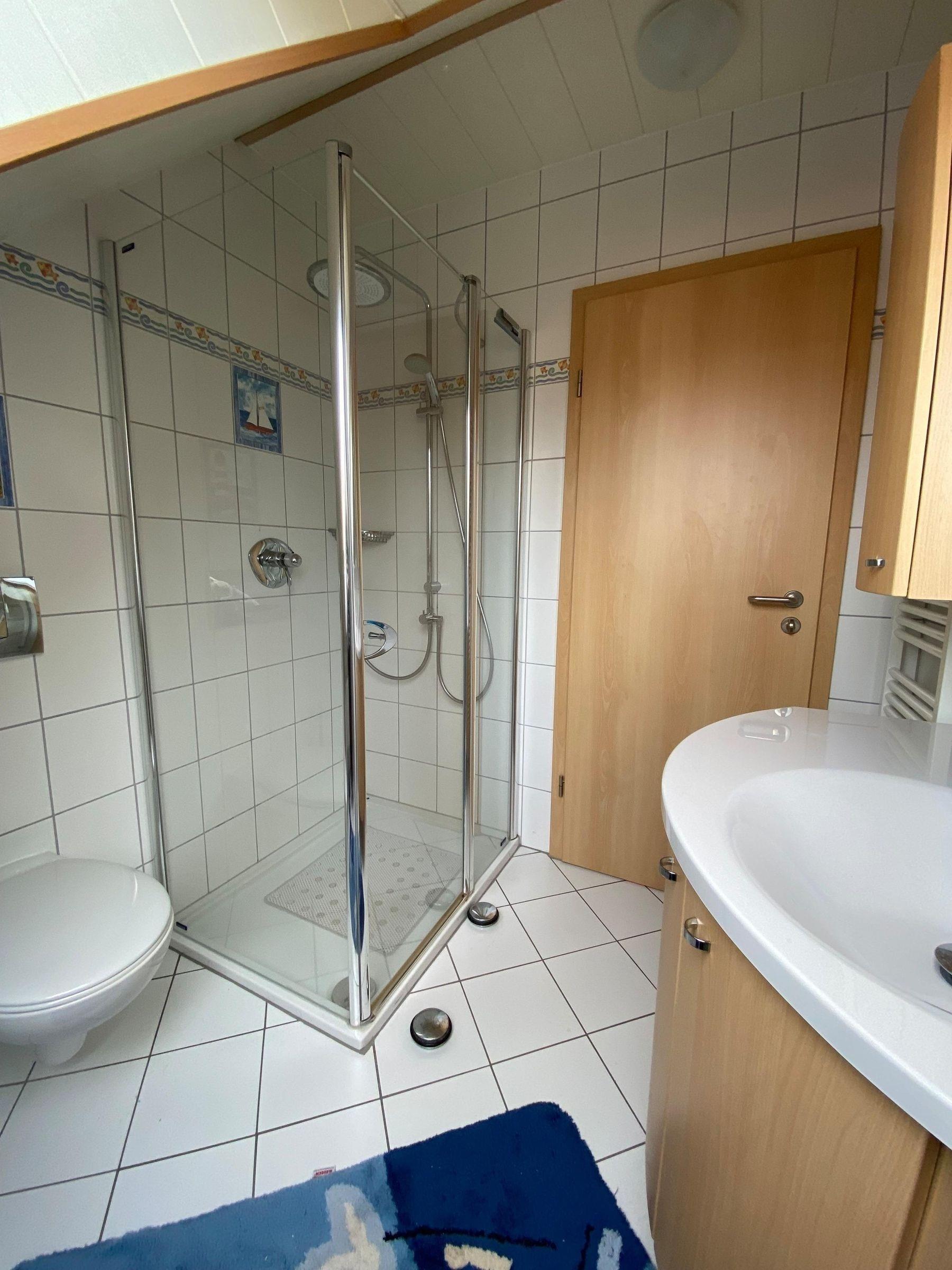 Herzlich willkommen in Ihrem Zuhause auf Zeit! Im Erdgeschoss befinden sich ein großzügiger Wohn-/Essbereich mit einer gut ausgestatteten Küche, ein Gäste-WC mit Waschmaschine und Trockner sowie ein Vorratsraum. Vom Wohn-/Essbereich geht es direkt auf die sonnige Terrasse, auf der Sie von den frühen Morgenstunden bis zum Abend die Sonne inkl. Sonnenuntergang genießen können. Ein Sonnenschirm und bequeme Stühle mit Tisch laden zum Verweilen ein - und es kann durchaus passieren, dass sich der ein oder andere Fasan, Kaninchen oder auch Rehe sehen lassen. Für den Grillspaß auf der Terrasse steht Ihnen ein Holzkohlegrill zur Verfügung. Im Obergeschoss befinden sich drei Schlafräume, zwei mit jeweils einem Doppelbett sowie eins mit zwei Einzelbetten (je 80x200 cm). Ein tageslichthelles Duschbad finden Sie ebenfalls hier oben..