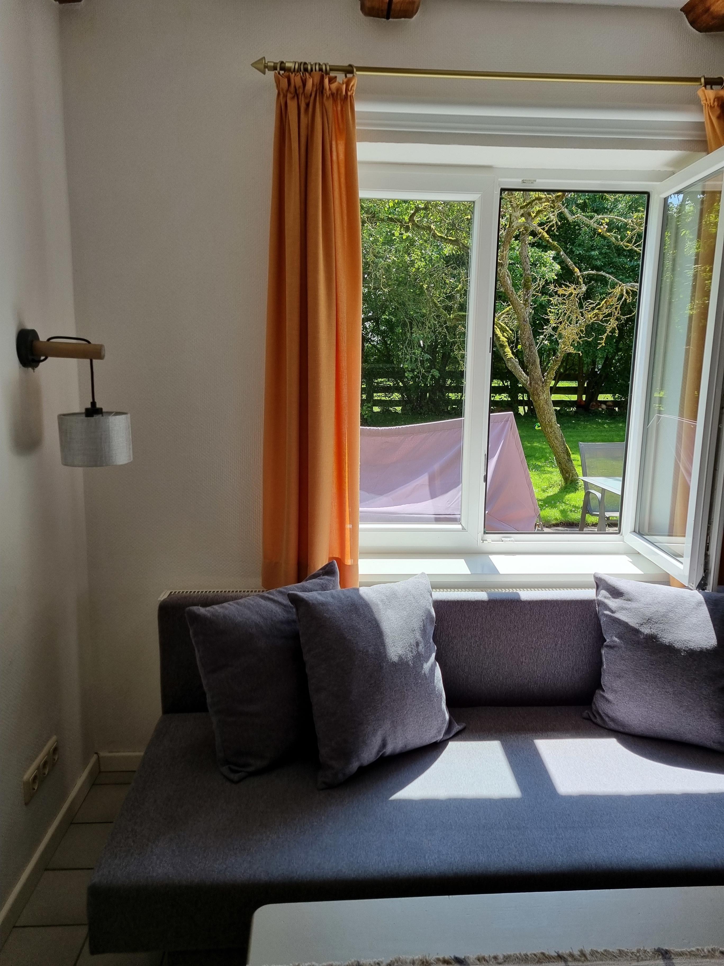 Es liegt hinter dem großen Bauernhaus und hat eine eigene Terrasse Richtung Süden. Das Haus ist klein aber fein: