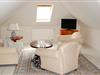 Das Dopplezimmer mit Dusche und WC, 50qm, befindet sich in einem Einzelhaus im Obergeschoss. Das Zimmer ist allergikergercht ausgestattet. Aus diesem Grund ist das Rauchen und das Mitbringen von Haustieren nicht gestattet. Das Zimmer ist mit einer gemütlichen Sitzecke sowie Radio und Fernseher ausgestattet. Weiter sind PKW-Stellplätze vorhanden.