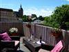 Von der hellen Küche gelangen Sie auf den Balkon mit Blick auf die 775 Jahre alte St. Nikolaikirche. Hier können Sie in der Abendsonne einen Sekt genießen, der zur Begrüßung für Sie bereit steht.