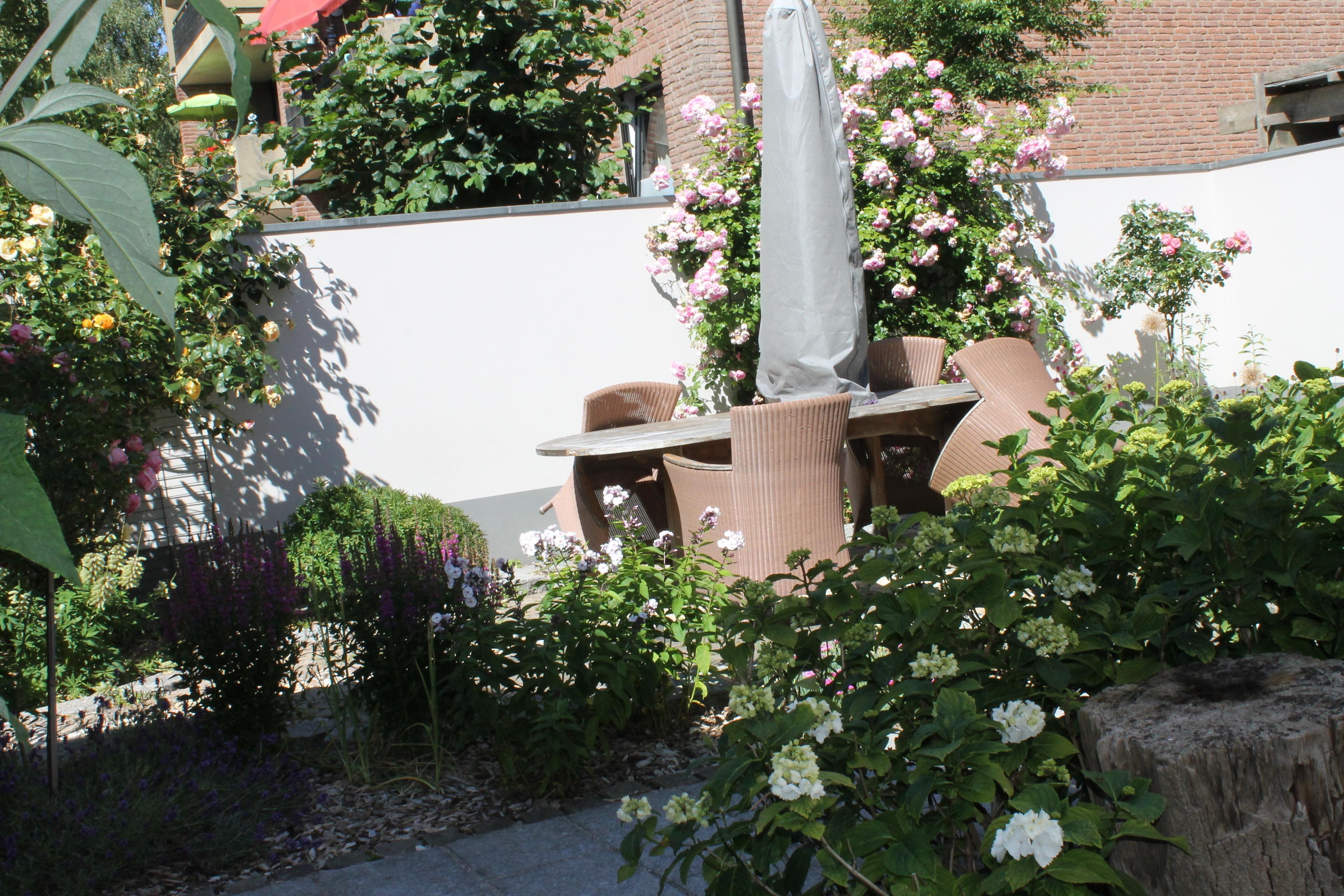 Einen separaten windgeschützten sonnigen Innenhof mit Teak-Sitzgruppe