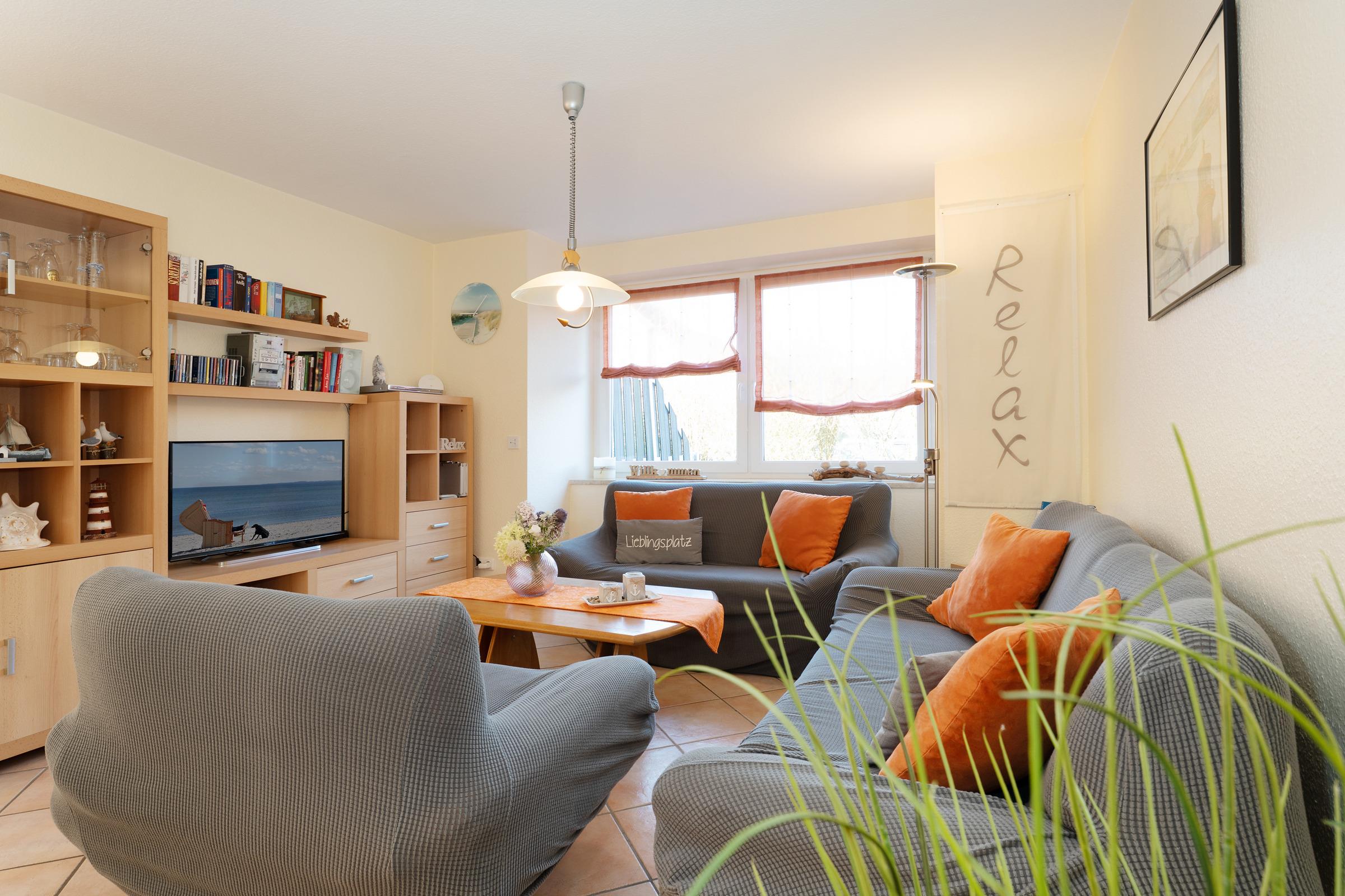 Herzlich willkommen - Ihr Feriendomizil ist liebevoll und komfortabel eingerichtet und bietet beste Erholung und Entspannung. Machen sie es sich im großzügigen Wohn- und Essbereich vor dem TV gemütlich - oder genießen Sie Ihre Lieblingsspeisen, die Sie zuvor in der separaten Küche zubereitet haben. Die gute Ausstattung mit Geschirrspüler wird Sie begeistern. Genießen Sie Ihre Auszeit auf der möblierten Terrasse mit eigenem Strandkorb. Für eine geruhsame Nacht stehen Ihnen ein Schlafzimmer mit einem Doppelbett sowie ein Schlafzimmer mit zwei Einzelbetten zur Verfügung. Das tageslichthelle Duschbad ist hell gefliest und verspricht einen guten Start in den Tag. Zum historischen Stadtkern sind es übrigens nur rund 10 Gehminuten.