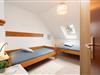 Im 1. Stock eines Einfamilienhauses gelegen bietet diese Ferienwohnung eine ruhige Atmosphäre für Ihren Urlaub. Die liebevolle Einrichtung zeichnet dieses Feriendomizil aus. Die Wohnung verfügt über einen Wohnraum mit Doppel-Schrankbett, ein Schlafzimmer mit zwei Einzelbetten und einer separaten, sehr gut ausgestatteten Küche. Bitte beachten Sie, dass das separate Schlafzimmer nur über den öffentlichen Hausflur erreichbar ist.