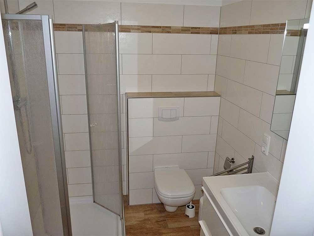 Denn es gibt zwei Duschbäder und drei Schlafzimmer mit je einem Doppelbett (180x200, Matratzen 90x200).