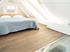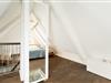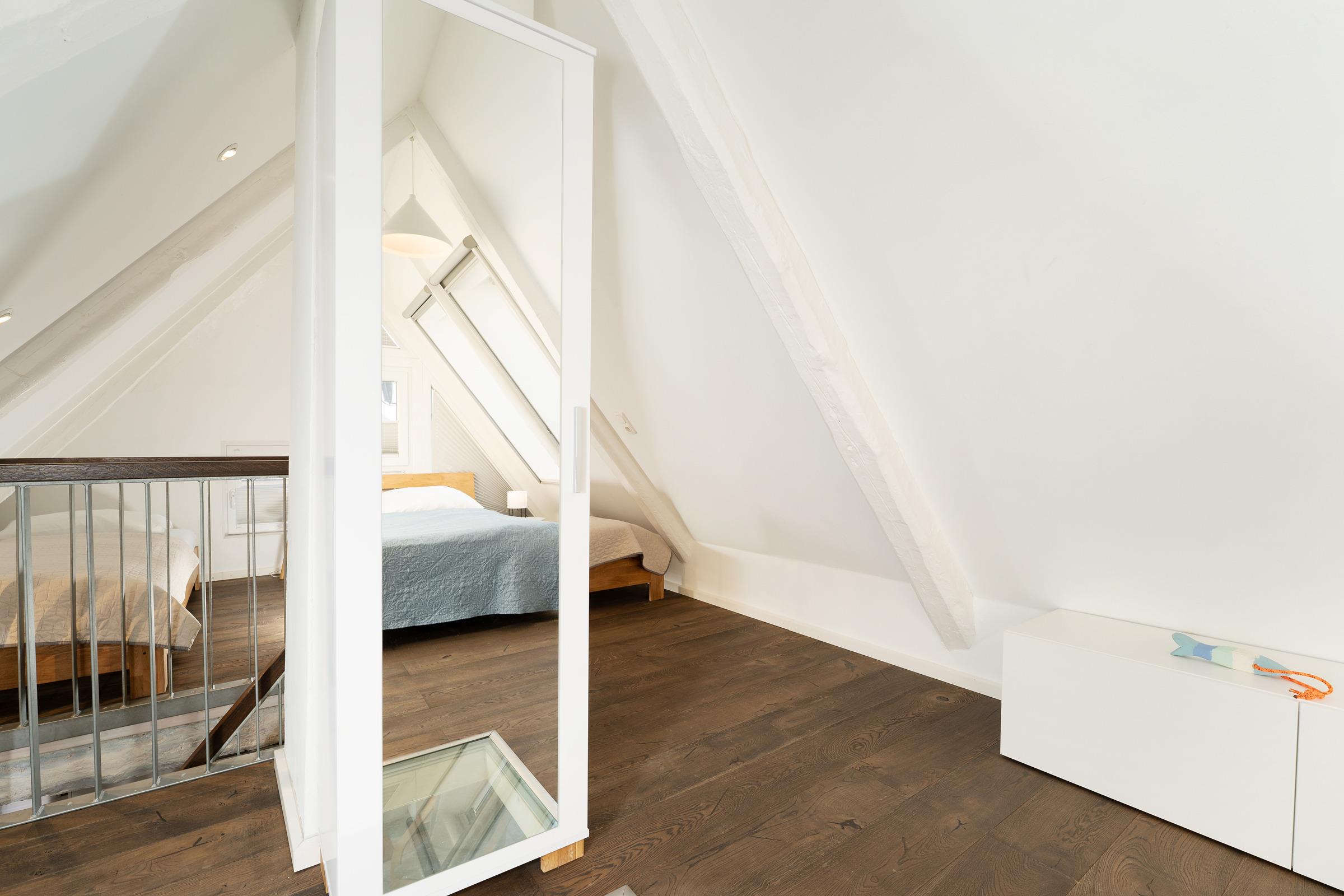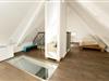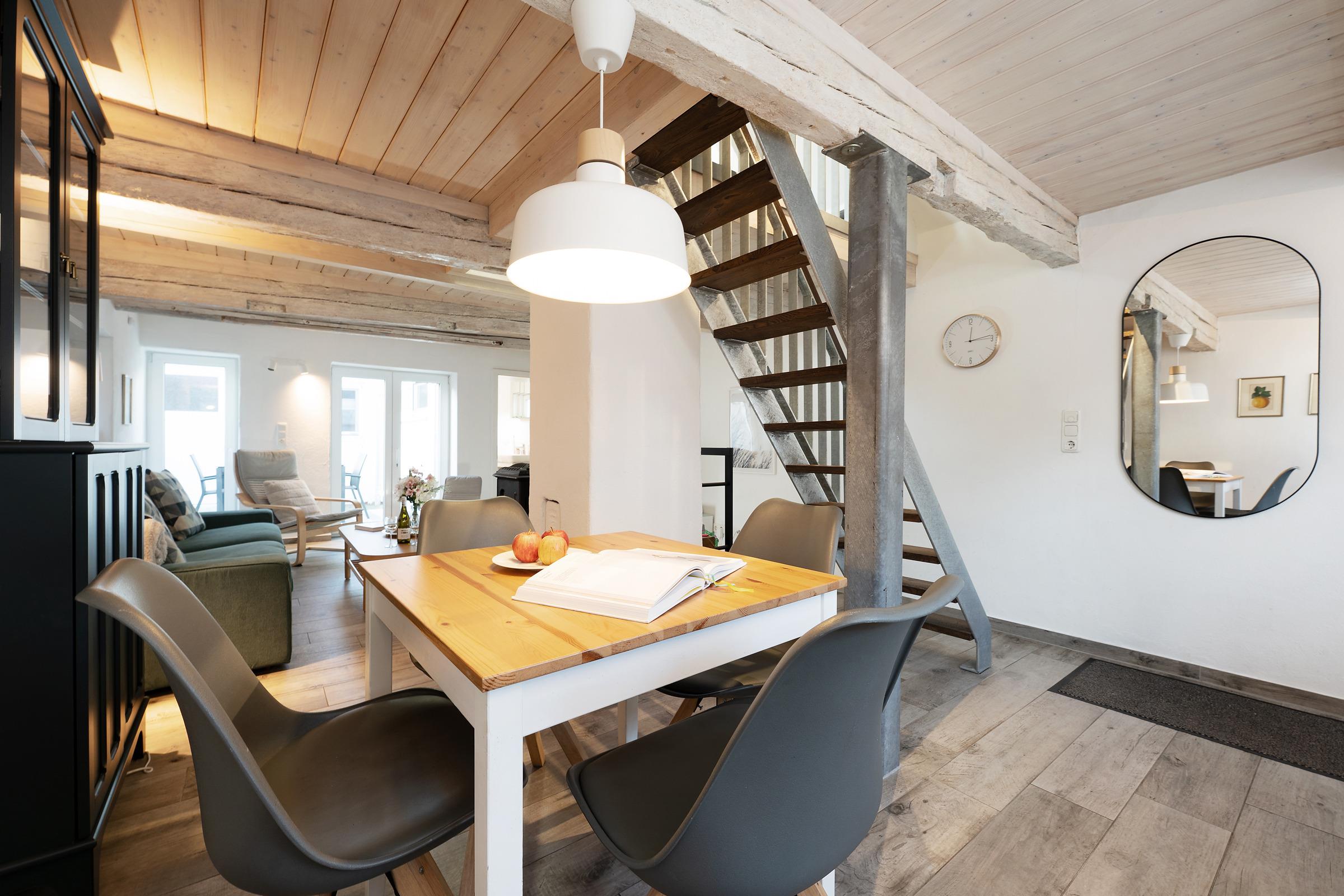 Das Schlafzimmer im 1. OG verfügt über ein Doppelbett sowie zwei zusätzliches Einzelbetten und ist über eine offene Treppe mit dem Wohnbereich verbunden. Das moderne Bad im EG ist mit bodengleicher Dusche/WC, Haartrockner und beheizbarem Handtuchhalter ausgestattet. Ein Kinderhochstuhl und ein Kinderreisebett stehen zur Verfügung.