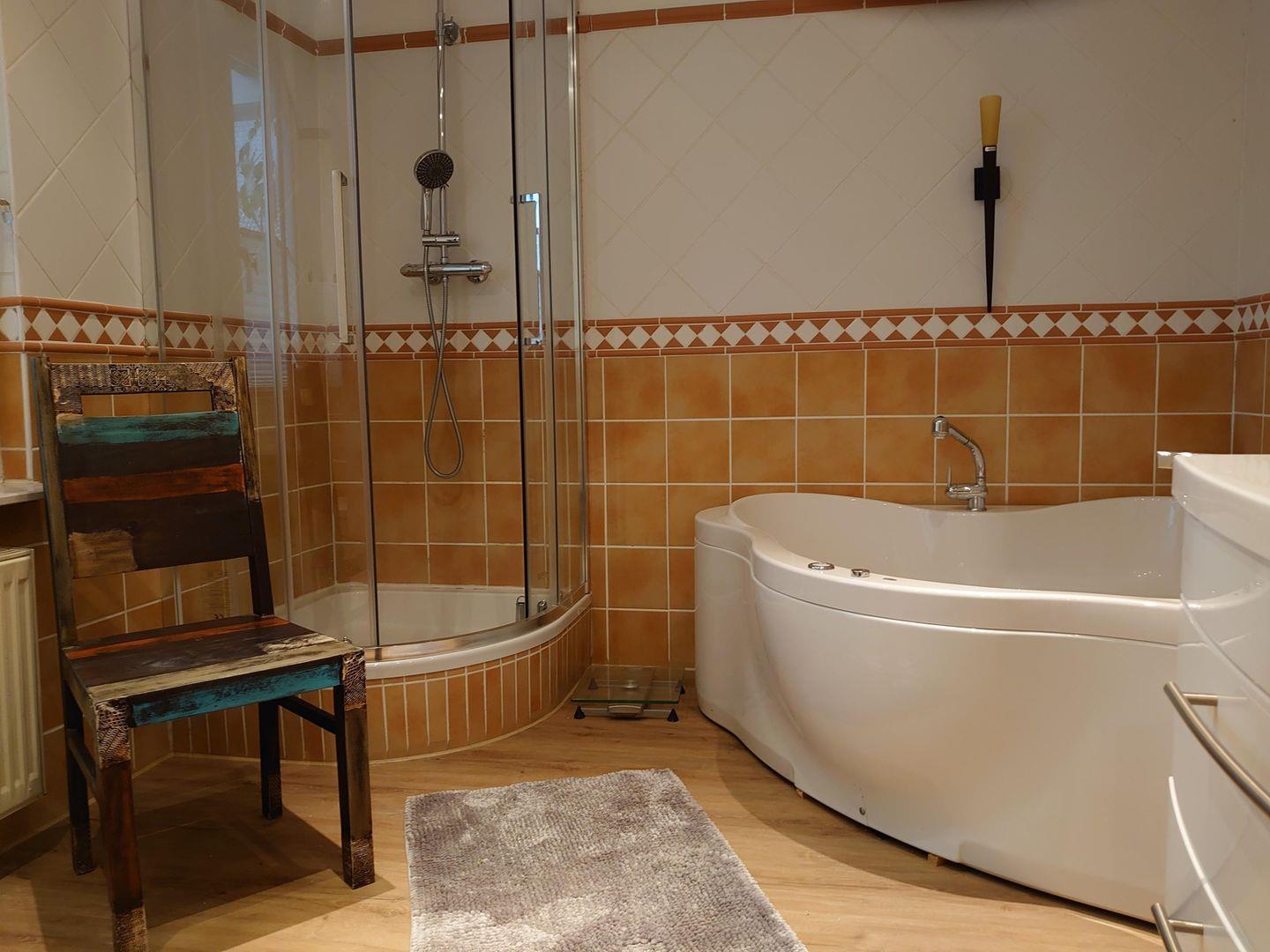 Die "Ruheoase" ist mit einem gemütlichen Wohn-/Essbereich, großzügigem Bad im Erdgeschoss auf ca. 129 m² modern und komfortabel ausgestattet. Das Haus ist liebevoll gestaltet und eingerichtet. Sie finden eine elegante Atmosphäre und Ausstattung vor- es fehlt an nichts. In den 3 Schlafräumen, zwei mit 180er Boxspringbetten, eines mit 140er Boxspringbett, finden bis zu 5 Erwachsene Platz. Ein kostenfreies WLAN, eine hochwertig komplett ausgestattete Küche inklusive Geschirrspüler und integrierter Mikrowelle und vieles mehr sorgen für einen angenehmen Urlaub.