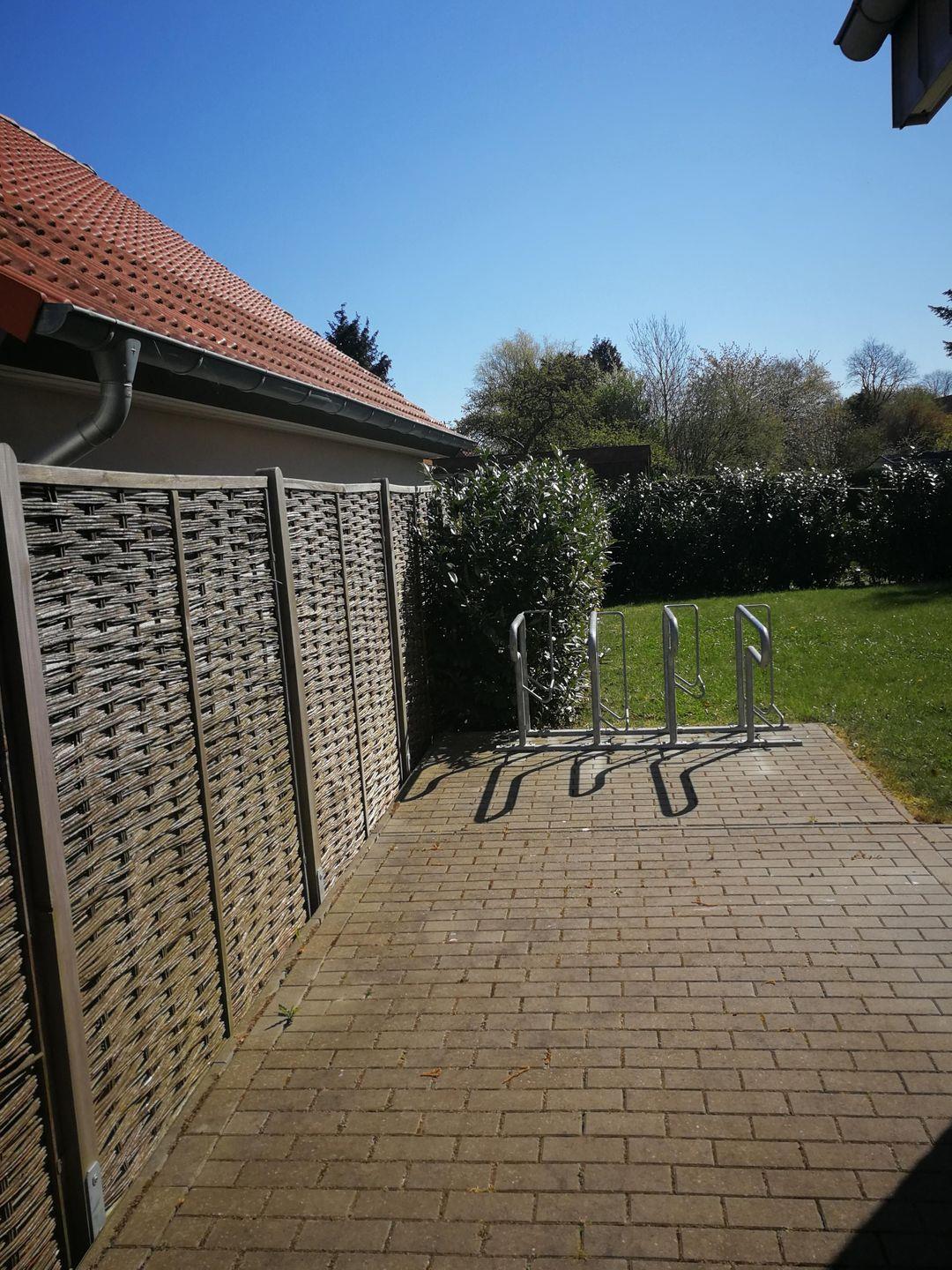 Das ca. 400 m² große Grundstück mit Frühstücksterrasse und gepflegtem Garten steht zur Nutzung zur Verfügung und lädt zu Sonnenbaden, Spielen mit den Kindern und Verweilen ein. Am Vorderhaus befindet sich ein PKW-Stellplatz. Ihre Fahrräder können Sie in einem separaten Abstellraum deponieren. Im offen gestalteten Wohnbereich mit großer Relax-Couch, Flat-TV und Blick in die offene Küche und den Garten ist Entspannung und Wohlfühlen garantiert.