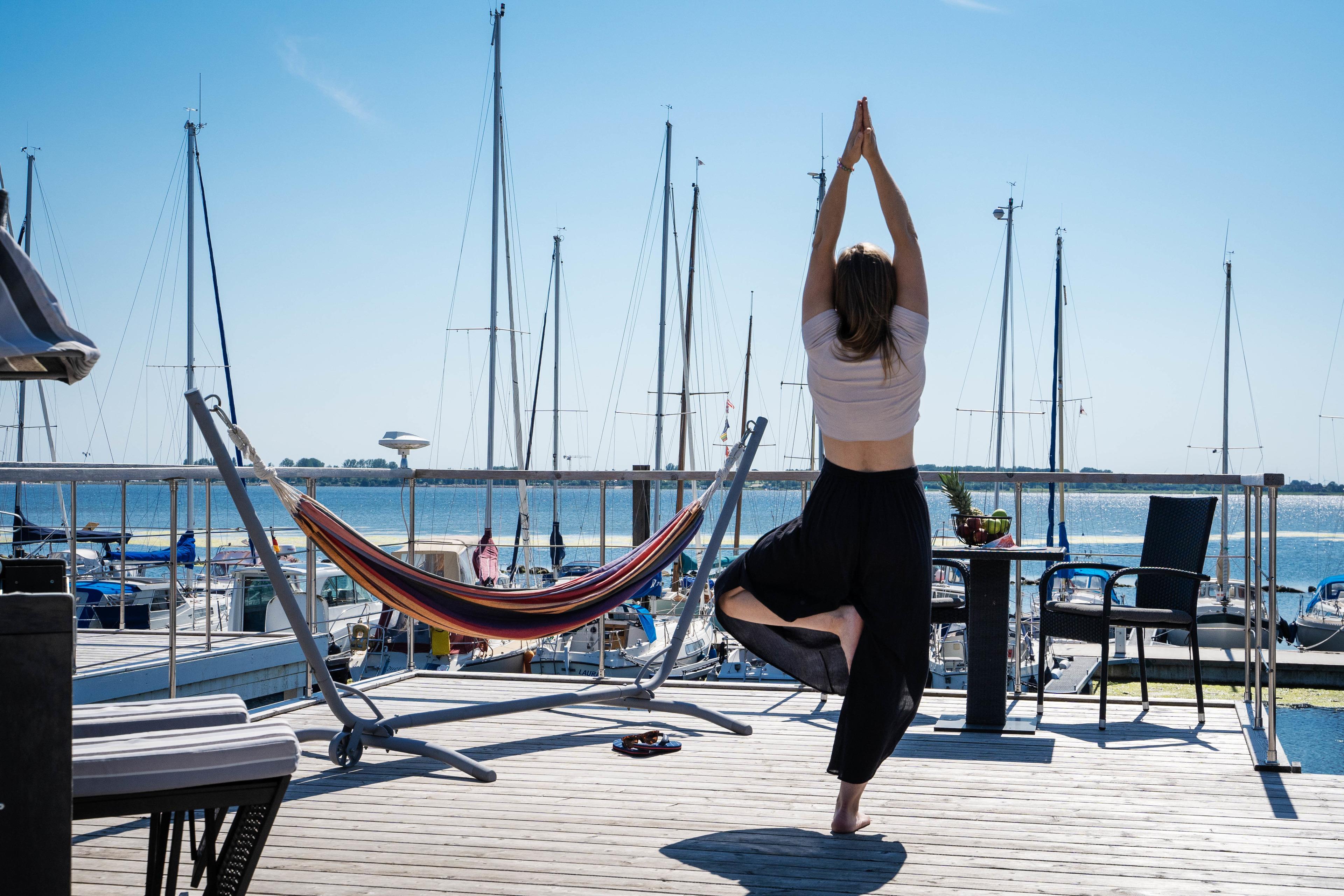 Genießen Sie Ihren Fehmarn Urlaub auf unserem hundefreundlichem Hausboot ELLA und entspannen auf der Hängematte an Deck.