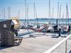 begrüßt Sie unser Hausboot ELLA im ruhigen Yachthafen Burgstaaken auf Fehmarn mit Blick auf die Fehmarnsundbrücke.