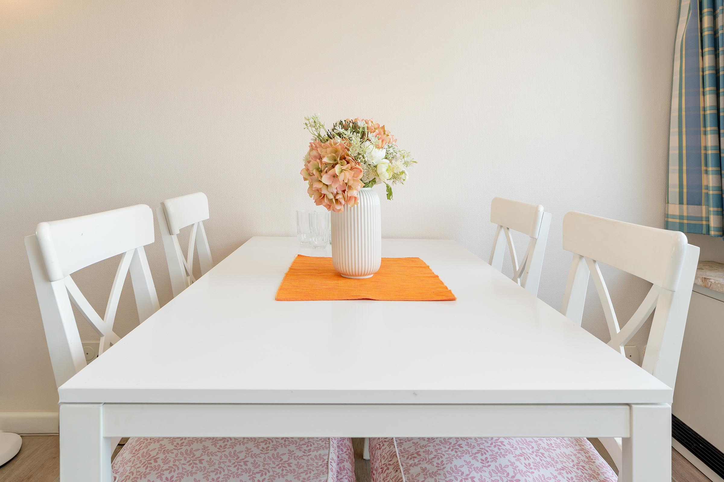 Bequem mit dem Fahrstuhl erreichen Sie Ihr Urlaubsdomizil. Im gemütlichen Wohn-/ Schlafraum befindet sich ein bequemes Doppelbett (180x200 cm) zum Träumen sowie ein Esstisch und ein kleines Sofa mit TV-Gerät. Das Etagenbett steht zwischen der kleinen, aber gut ausgestatteten Küche und dem Badewannen-Bad. Das Besondere ist sicher die Lage dieser Ferienwohnung, weil Sie von Wasser umgeben ist. Unser Tipp: Öffnen Sie das Fenster, um die frische Meeresluft zu atmen und um den Rufen der Möwen zu lauschen. Praktisch: Fußläufig finden Sie kleine Läden für die Brötchen am Morgen, einen Waschsalon und Lokale, um bei Tee und Kuchen den Tag zu genießen oder abends den Sonnenuntergang an der Uferpromenade und die letzten Kiter zu beobachten.