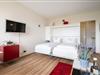 Schlafzimmer: 2 Einzelbetten, Verdunkelung: Plissee, Kleiderschrank, kein Platz für ein Babybett vorhanden