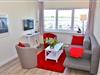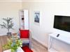 Die Wohnung 10 ist die Eckwohnung im 1. Obergeschoss und somit ideal für Gäste, die es etwas ruhiger mögen. Sie ist über die Terrasse zu erreichen. Im Objekt befindet sich ein festes w-lan Netzwerk, in der Wohnung ein smart TV. Die Wohnung besteht aus einem großen Wohn-/Schlafraum mit Schlafsofa (140x200cm) sowie einem Wandklappbett (180x200cm) und einem Essplatz für bis zu 6 Personen. Die im selben Raum befindliche Versorgungsbar ist mit einem Kühlschrank, einer Mikrowelle und einem Kochfeld sowie einem mobilen Minibackofen ausgestattet. Geschirr und alles was Sie für Ihren Urlaub benötigen ist ebenfalls vorhanden. Separat steht Ihnen noch ein Schlafzimmer mit Doppelbett (180x200cm) sowie einen Kleiderschrank zur Verfügung. Das Duschbad rundet die Wohnung mit ihren 53qm ab.