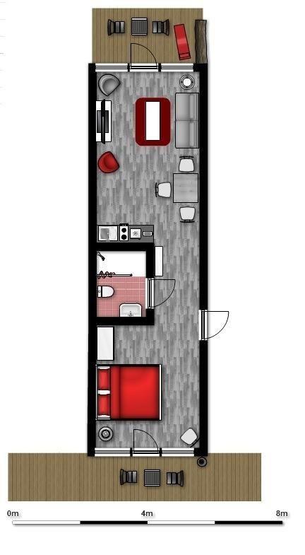Die Wohnung 03 ist ideal für 2 Personen geeignet und befindet sich im Erdgeschoss mit direktem Zugang zum Hafen. Sie verfügt über eine Süd- und Nordterrasse.