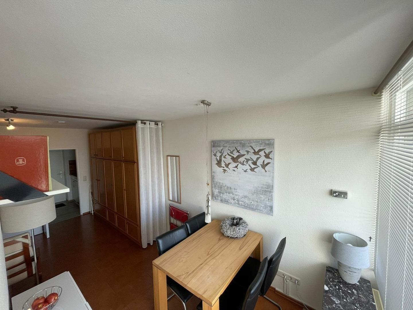 Das Appartement ist für 4 Personen ausgestattet - optimal wäre eine Belegung von 2 Erwachsenen und zwei Kindern. Der Wohnbereich ist mit einem integrierten Essbereich, einem komfortablen Schrankbett (160x200 cm), einem separatem Kinderzimmer mit einem Hochbett und einer Fernsehecke sowie einer großen Fensterfront mit Zugang zum Südbalkon ausgestattet. Die Wohnung ist sehr gepflegt und hochwertig ausgestattet. Sie ist sehr liebevoll eingerichtet, hier stimmt alles.