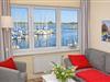 På 1. etage: (åbent køkken(elkedel, komfur, kaffemaskine, ovn, mikrobølgeovn, opvaskemaskine , køleskab), Stue/soveværelse(enkeltsovesofa, Fjernsyn, spisebord, sofahjørne), soveværelse(dobbeltseng), badeværelse(bruser, håndvask, toilet, føntørrer), balkon, havemøbler) parkering