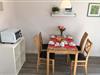 Lejligheden består af et kombineret opholds-/soveområde med sovesofa (140 x 200 cm), tv, Blu-ray-afspiller og et tekøkken med køleskab, keramisk kogeplade og mikrobølgeovn. Der er også kaffemaskine og brødrister. Separat fra stuen er der en spiseplads med bord og fire stole, en mini-bærbar ovn og et soveværelse med dobbeltseng og garderobe. Bygningen har et fast Wi-Fi-netværk, og lejligheden har et smart-tv. Lejligheden er tilgængelig via en rummelig, sydvendt terrasse. Der er også privat, gratis parkeringsplads og gratis Wi-Fi i lejligheden.