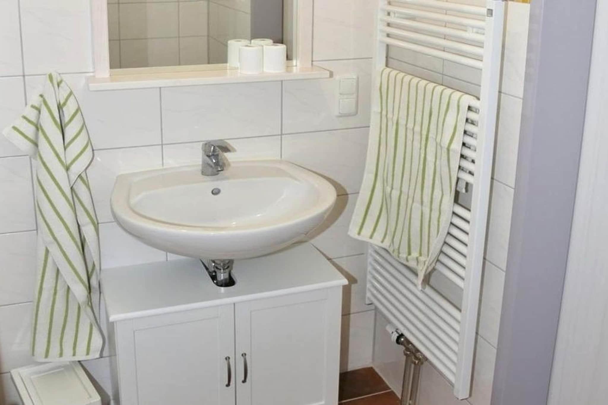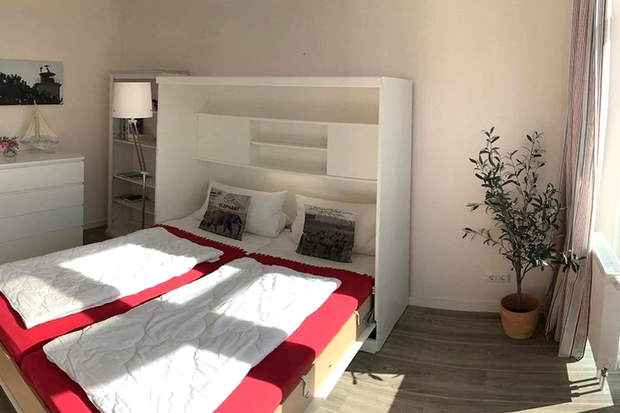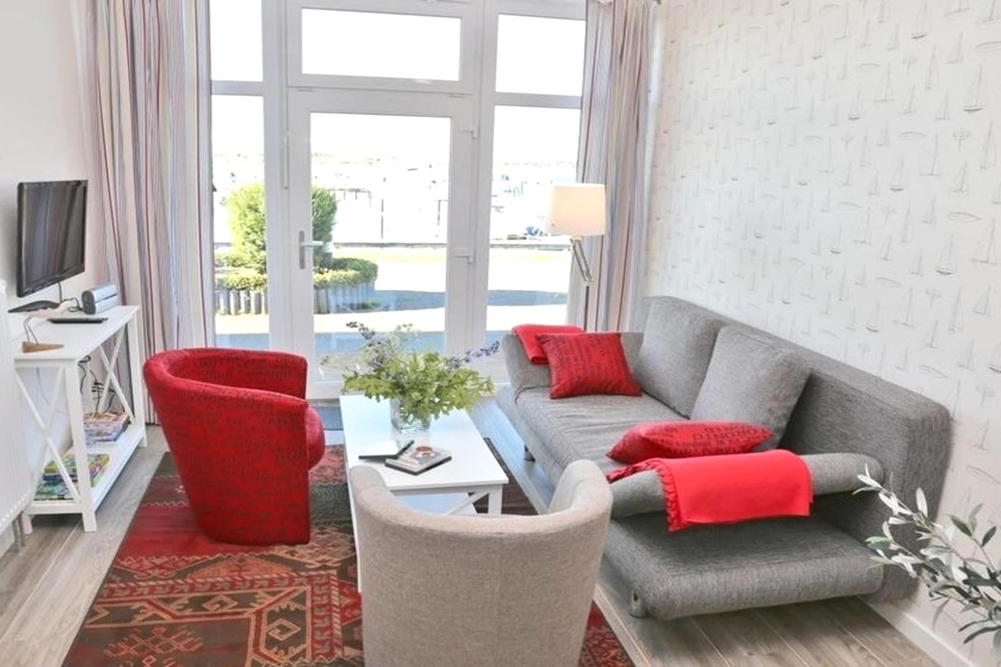 Denne ferielejlighed er den største i stueetagen og består af en stue, et stort brusebadeværelse, et separat soveværelse, et fuldt udstyret køkken og et ekstra soveværelse. Stuen/soveværelset har et fladskærms-tv (Smart TV), Blu-ray-afspiller, radio og en sovesofa, der kan laves om til et soveområde på 140 x 200 cm. Lejligheden har et fast Wi-Fi-netværk. Der er også en spiseplads med bord og stole i opholdsstuen. Det separate soveværelse har udsigt over marinaen og har et stort klædeskab, en lænestol og en dobbeltseng (180 x 200 cm). Det separate soveområde omfatter en stor kommode og en væghængt klapseng (180 x 200 cm). Badeværelset er meget rummeligt og udstyret med bruseniche. Køkkenet har køleskab, keramisk kogeplade, vask, brødrister, kaffemaskine, miniovn og mikrobølgeovn. Lejligheden er tilgængelig fra både gangen og terrasserne. En strandstol venter på dig på terrassen.