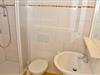 På 1. etage: (Køkken(spisebord, elkedel, brødrister, komfur(Komfur med fire kogeplader, glaskeramisk), emhætte, kaffemaskine, mikrobølgeovn, køleskab), Stue/soveværelse(enkeltsovesofa, dobbeltskabsseng, Fjernsyn(Smart-TV)), soveværelse(dobbeltseng), badeværelse(bruser, håndvask, toilet, føntørrer), balkon, havemøbler, Solcreme) parkering
