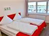 Velkommen til Femern! Lejlighed 10 er en hjørnelejlighed på første sal, hvilket gør den ideel for gæster, der foretrækker en roligere atmosfære. Den er tilgængelig via terrassen. Bygningen har et fast Wi-Fi-netværk, og et smart-tv er tilgængeligt for gæsterne. Lejligheden består af en stor stue/soveværelse med en sovesofa (140x200cm), en væghængt klapseng (180x200cm) og en spiseplads med et bord til op til seks personer. Det åbne køkken, der ligger i samme rum, er udstyret med køleskab, mikrobølgeovn, kogeplader og en bærbar miniovn. Der er også service og alt andet, du måtte have brug for til din ferie. Et separat soveværelse har en dobbeltseng (180x200cm) og et klædeskab. Et brusebad fuldender den 53 m² store lejlighed. Højdepunktet er den unikke udsigt over den nydesignede havnepromenade med sin egen private, lukkede træterrasse. Fra sofaen kan du se det imponerende fyrtårn på muren og skibene i havnen, hvilket skaber en charmerende maritim atmosfære. Badeværelset har bruseniche, hvilket gør det ideelt for personer med nedsat mobilitet. Der er en nyrenoveret, gratis parkeringsplads lige uden for døren.