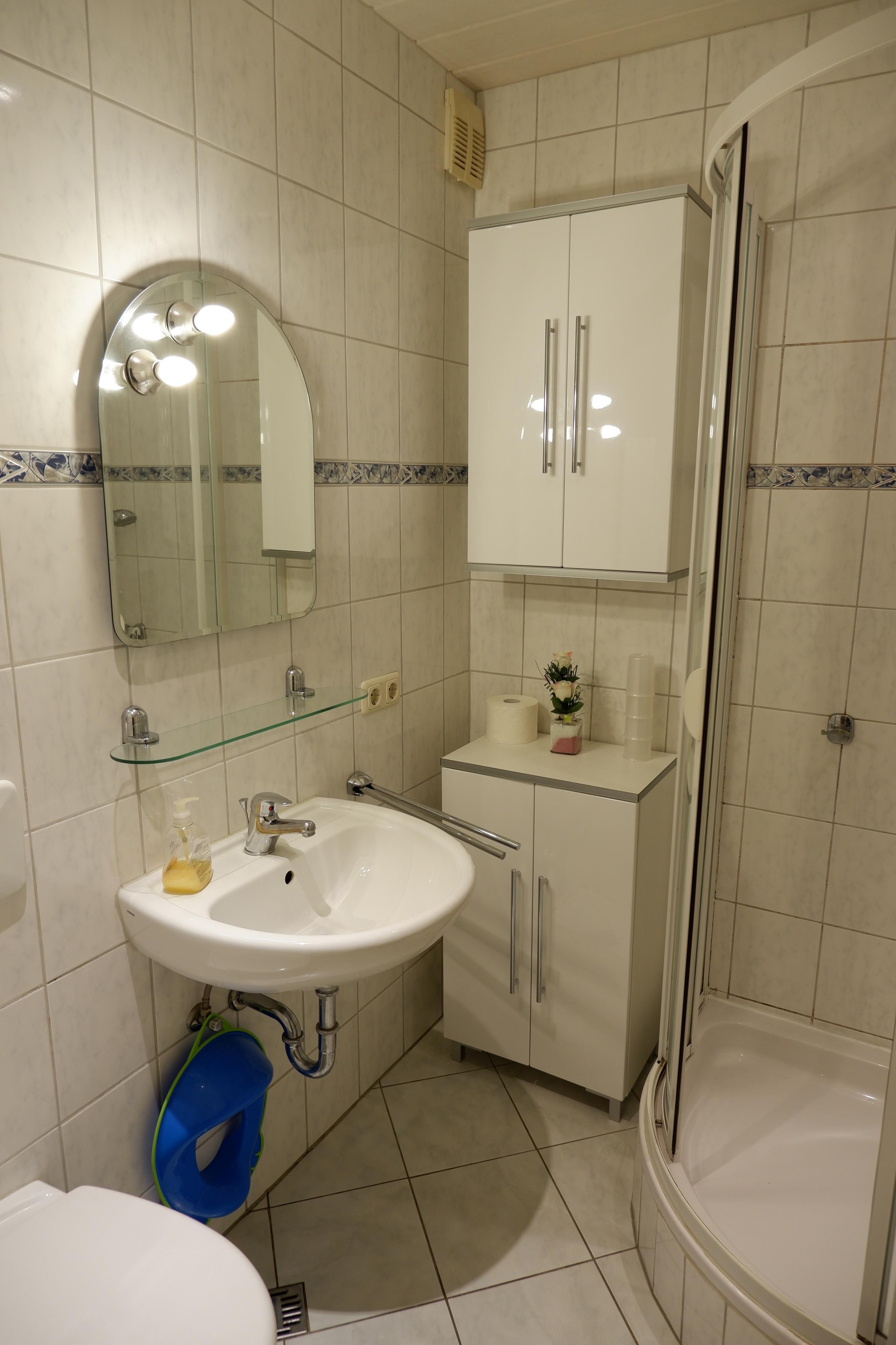 Nachtstromspeicheröfen, im Bad Heizlüfter, falls es kühl ist.