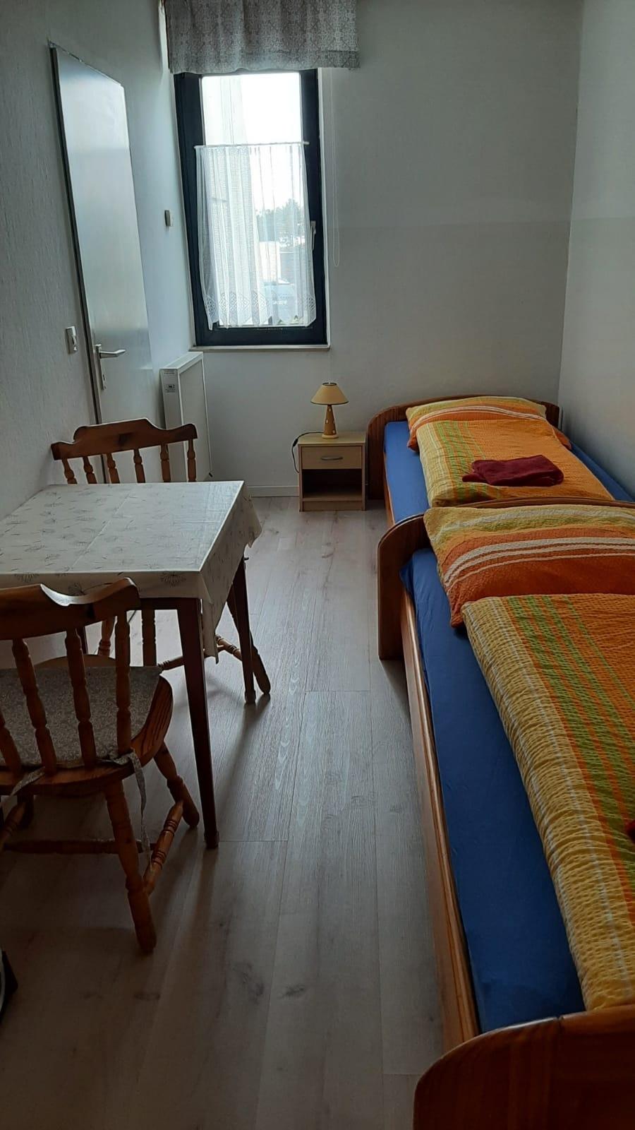 Schlafraum mit 2 Einzelbetten 0,90 x 2,00 m, Kleiderschrank, kleiner Tisch mit Stühlen.