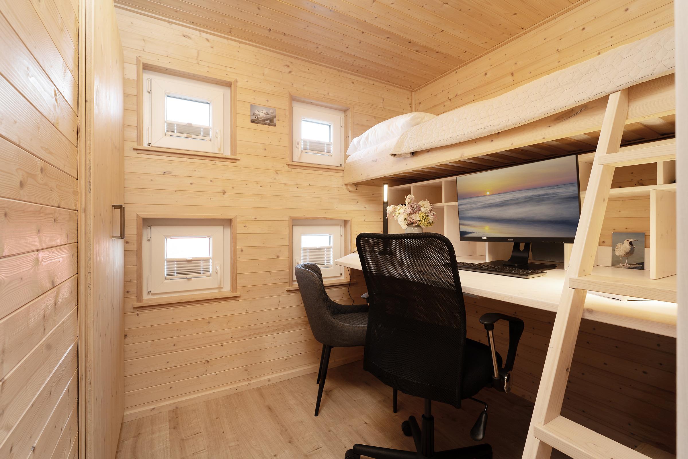 Schlafzimmer 2: 1 Etagenbett (80x200 cm), Kleiderschrank, Sichtschutz: Plissee, Platz für Babybett vorhanden