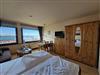 Sie verfügt über einen Wohn/Schlafraum mit einem Doppelbett (180x200), einem kleinen Sofa mit fantastischem Blick auf den Yachthafen, sowie einem Esstisch mit vier Stühlen.
